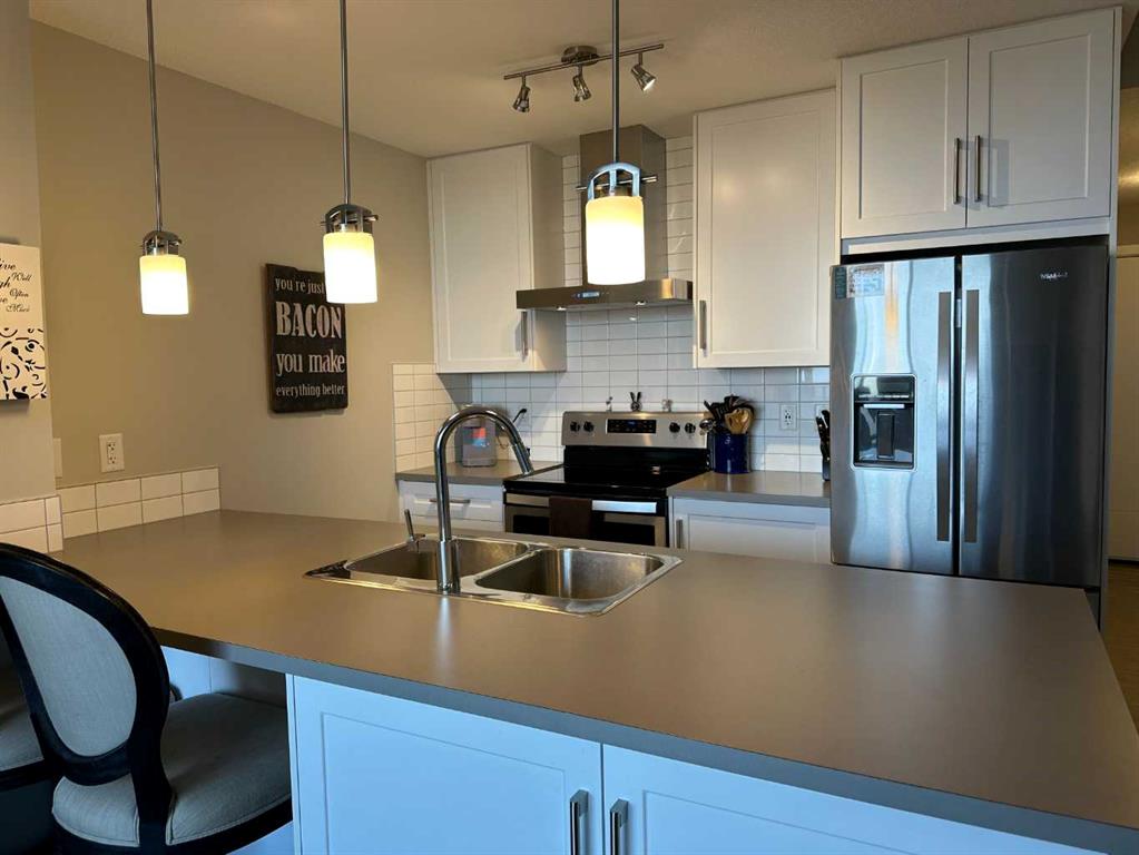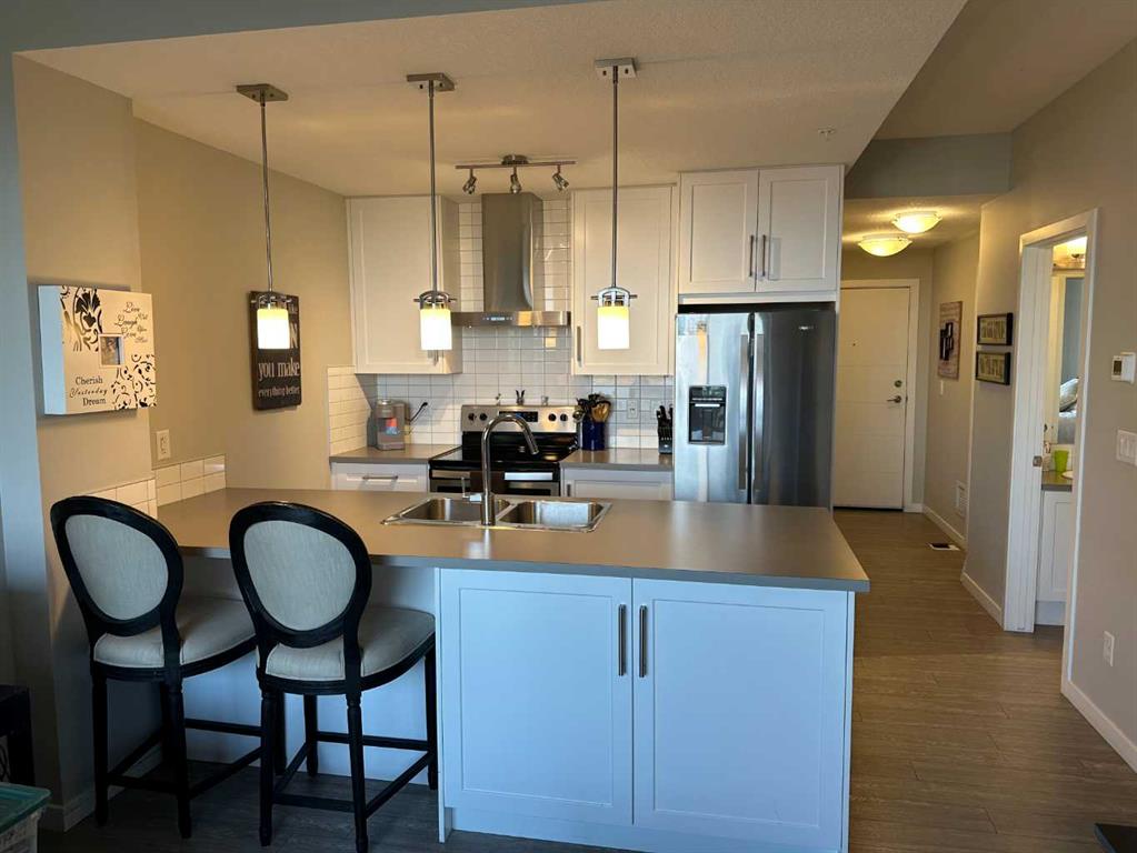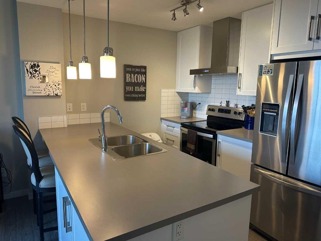 Welcome to the Crown Jewel of Mahogany Lake - Westman Village! This is Calgary's First Resort-Style Lakefront Community complimented by the 40,000 sq. ft. Amenity Centre which will definitely impress those that appreciate the finer things in Life! Welcome to this exceptional one-bedroom, one bathroom home with in-suite laundry, a gorgeous kitchen with a breakfast bar which is open to your comfy cozy living room and it's all tastefully appointed with neutral tones and is in move-in condition. There are stain...