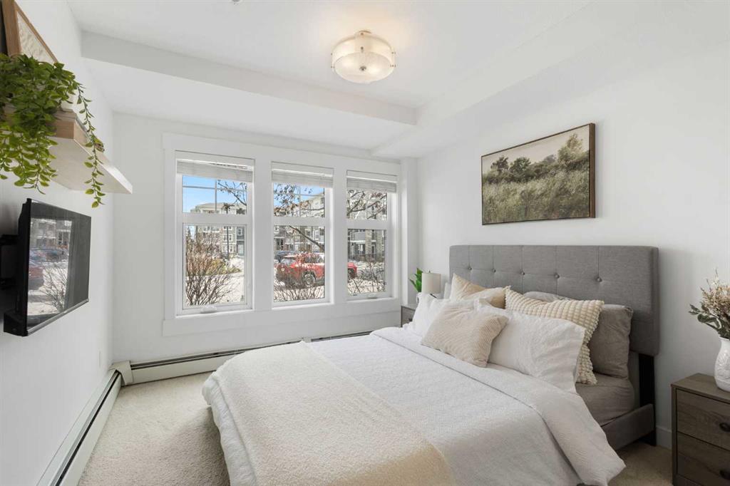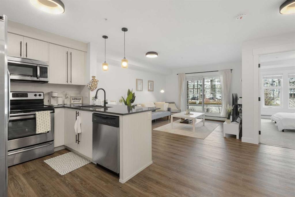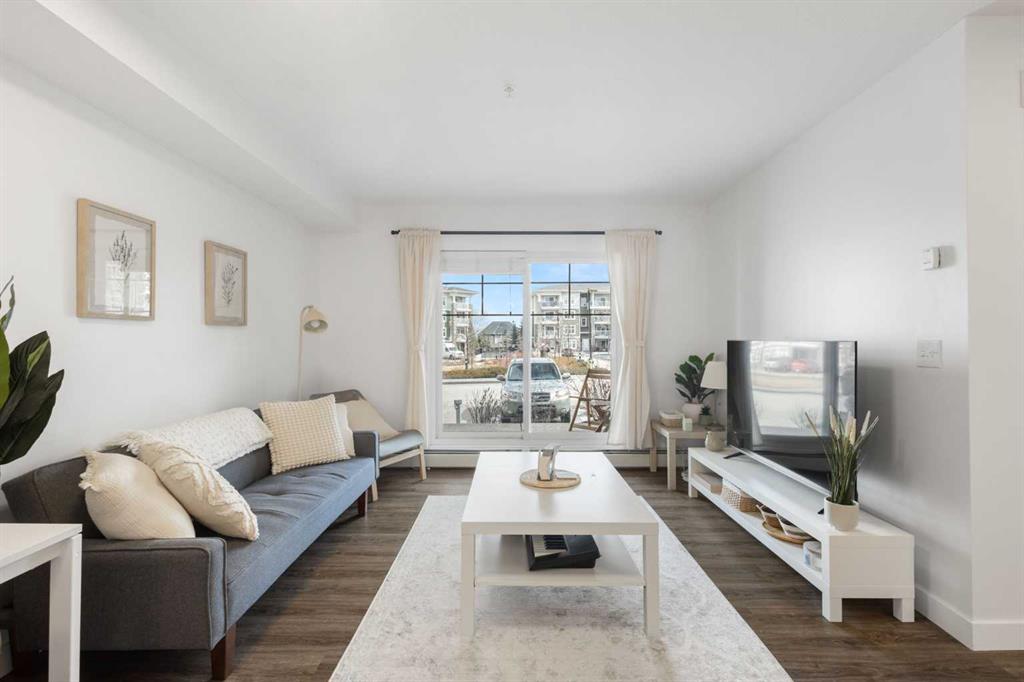 Welcome to 51 Oak, ideally situated in the highly sought-after SE lake community of Mahogany. This beautifully maintained condo offers over 500 sq ft of thoughtfully designed living space, complete with 1 bedroom, 1 full bathroom, and a titled parking stall. Step inside to discover durable vinyl plank flooring and a bright, open-concept layout that maximizes both comfort and functionality. The living area seamlessly extends to a spacious private patio through sliding glass doors, perfect for relaxing during...