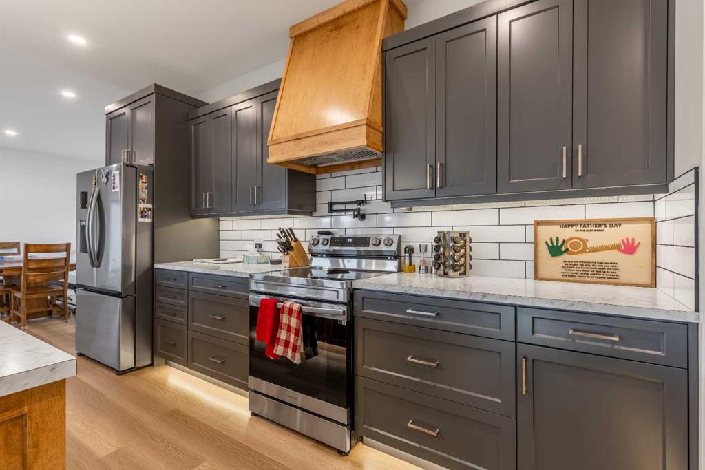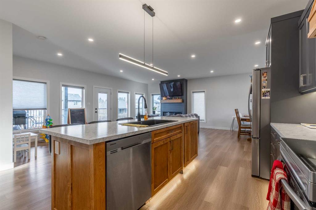 This Nobleford bi-level home was built with comfort in mind, offering a perfect layout for for busy families with enough space to work, play, entertain, and relax! Past the triple attached garage and front porch you'll enter into a bright front foyer with high ceilings and closet storage. On the main level, a large living room with a gas fireplace is located beside a comfortable dining room and a spacious kitchen with tons of cupboard space and a huge central island with a sink and breakfast bar. Past the w...
