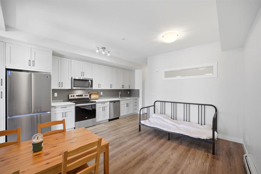 Stylish one bedroom-condo, in a quiet, well-kept and well-run complex in Sage Hill. This unit is perfect for professionals, first-time buyers, investors, or those looking to downsize! Featuring 514.91 sq ft of thoughtfully designed living space, this home offers a functional layout with modern finishes throughout. As you enter the unit, you’re welcomed by luxury vinyl plank flooring throughout. Near the entrance, there is a private full bathroom, a coat closet, and convenient in-suite laundry with Samsung w...