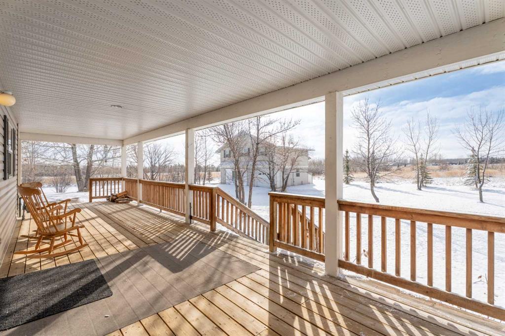 Welcome to the perfect blend of country living and modern versatility, ideally situated on 6 private, fully fenced acres just minutes from Okotoks. This well-maintained custom bungalow offers exceptional flexibility with up to 4,132 sq ft of potential living space, making it an outstanding opportunity for families, investors, or those seeking multi-generational living. The main residence features 1,680 sq ft above grade with a functional and inviting layout, including 3 spacious bedrooms and 2 full bathroom...