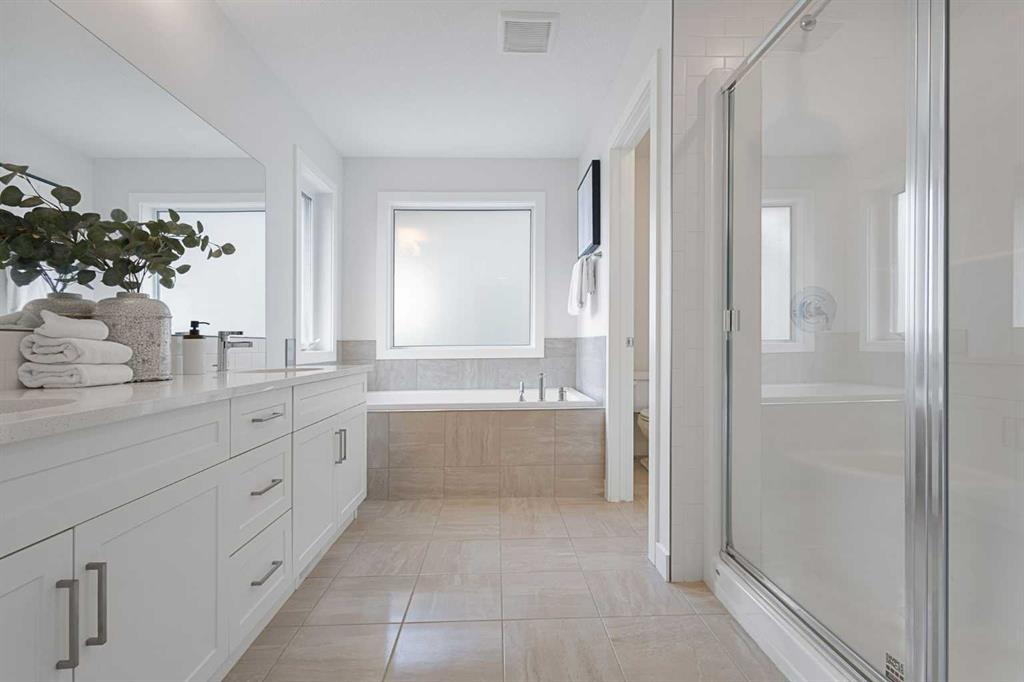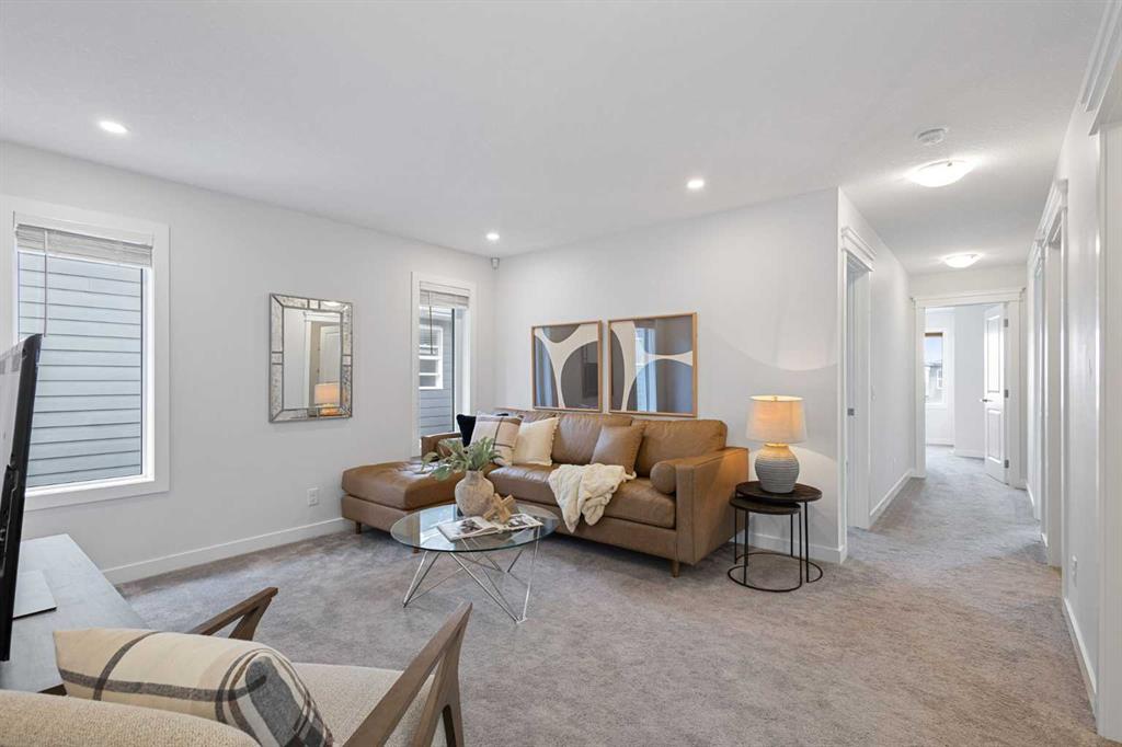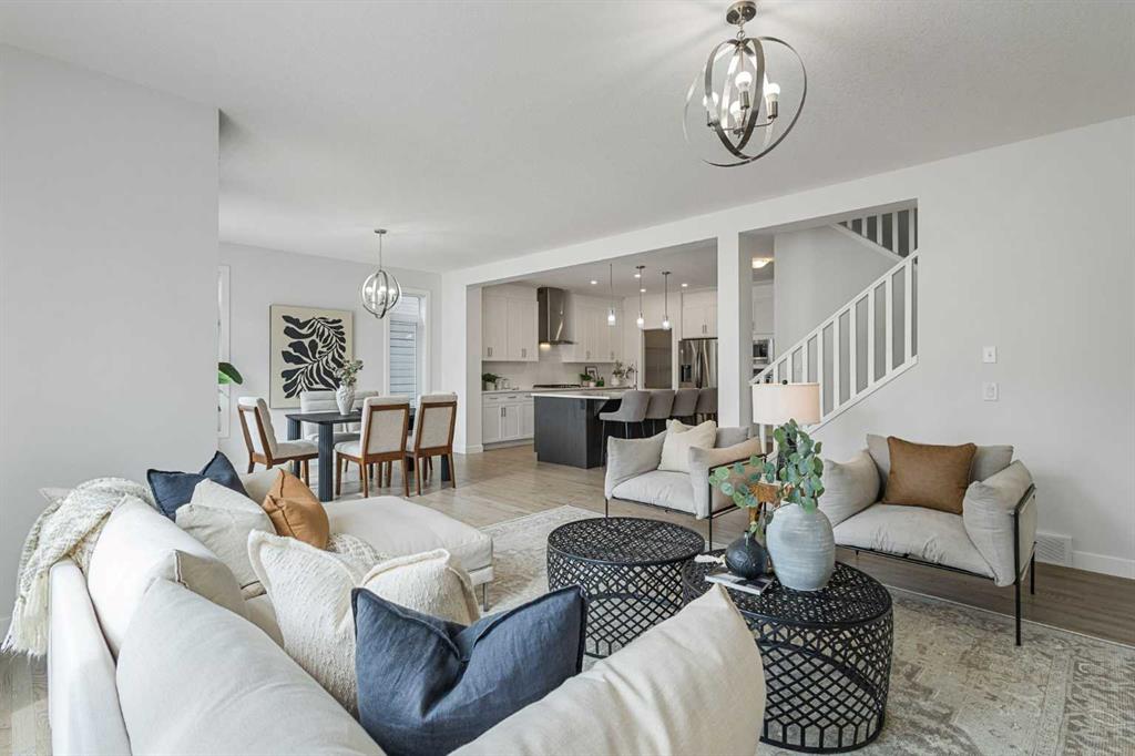 An exceptional luxury residence offering 2,580 sq. ft. of refined living in the prestigious community of Crestmont, perfectly positioned on a sun-drenched south-facing lot. The grand entry introduces a sophisticated den/office, elevated by designer wallpaper and an elegant ambiance. The gourmet kitchen is a true showpiece, featuring crown-moulded cabinetry, an expansive quartz island, premium built-in appliances including a wall oven and microwave, a striking chimney hood fan, and a gas cooktop—crafted for ...