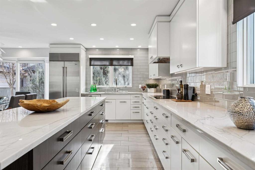 Bright + beautifully renovated executive family home with pleasing curb appeal, highlighted by a large covered front patio complete with heater — perfect for enjoying the outdoors year-round. This home shows beautifully + offers a warm, welcoming entrance that opens to a spacious living room with soaring ceilings + a huge picture window that fills the space with natural light. The chef’s kitchen is designed for both everyday living + entertaining, featuring abundant cabinetry + counter space, professional s...