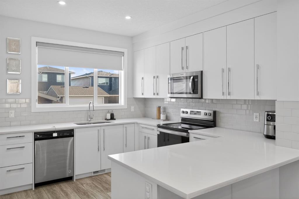 Basement complete. Side entrance. Double garage. Landscaping finished. Fully fenced. This home offers a true complete package, with all the major upgrades already in place, saving buyers the time, cost, and stress often associated with building new. Offering approximately 1,997 sq ft of total developed living space, this fully finished 4-bedroom, 3.5-bath home is thoughtfully designed for today’s modern lifestyle. The bright open-concept main floor features 9-foot ceilings and a beautifully upgraded kitchen...