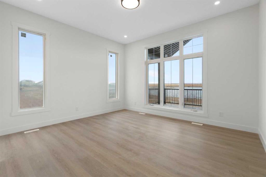 ELIGIBLE FOR FIRST HOME BUYERS GST REBATE. Welcome to Lakes of Muirfield, where elegance, space, and breathtaking views come together in this extraordinary bungalow offering more than 4,000 sq ft of beautifully finished living space. Set on a premium lot backing onto a serene pond with no neighbours behind, this home features a west-facing backyard with mountain views and a full-width covered deck topped with a stunning vaulted roof—an incredible extension of your living and entertaining space. Inside, the ...