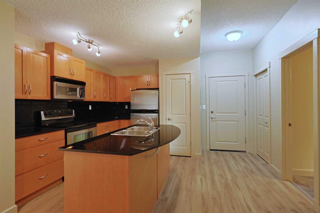 Here is the sought-after neighbourhood of Garrison Green is this fantastic 1 bedroom condo the popular GATEWAY GARRISON GREEN project, walking distance to beautiful Peacekeepers Park with its memorial to our veterans. Available for quick possession, this 3rd floor unit enjoys laminate floors & high ceilings, maple kitchen with granite counters, titled underground parking stall & covered South-facing balcony overlooking the central courtyard. You’ll love this sun-drenched home with its open concept floorplan...