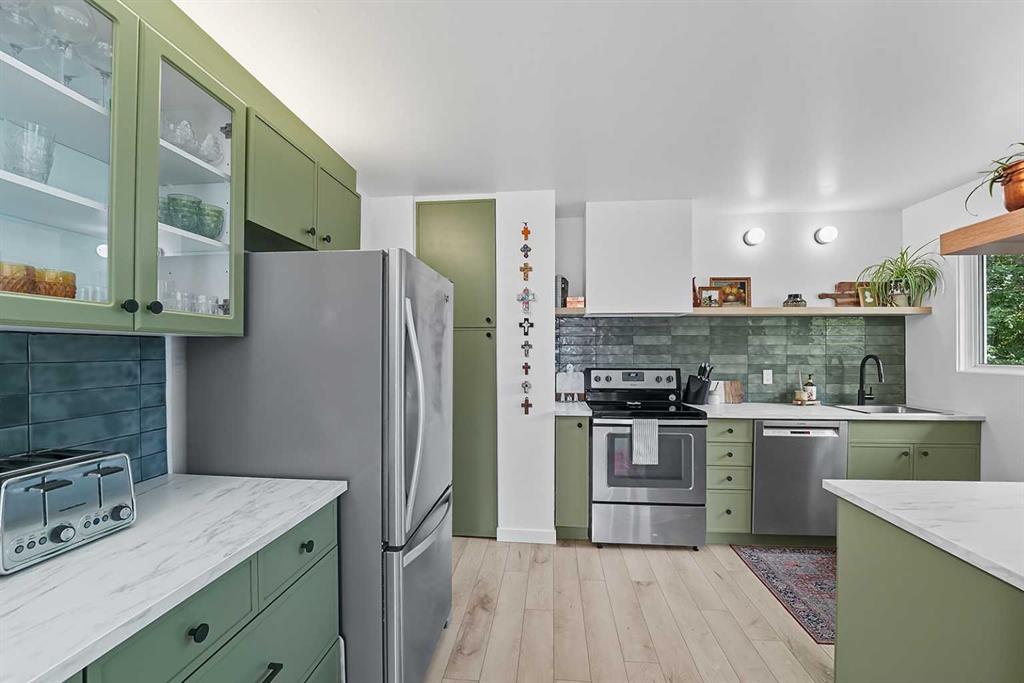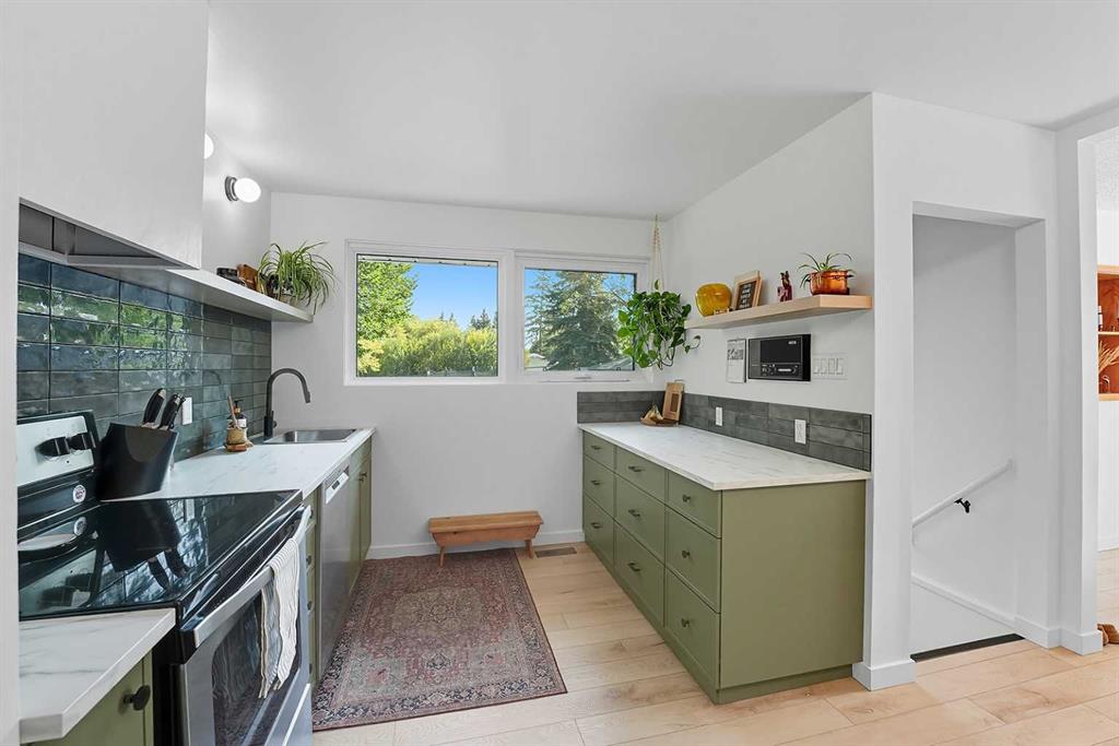 Welcome to 3527 43 Avenue in Mountview - a lovingly updated mid century modern bungalow located on a massive 11,000 + Sq Ft Lot! Pride of ownership is evident the moment you pull up to the property with an updated exterior, new shingles (2024), charming landscaping and more. The gorgeous main floor boasts over 1200 sq ft showcasing an oversized living room accompanied by a wood burning fireplace (sold as-is), a spacious dining area and of course the beautiful kitchen. The eclectic kitchen offers ample cabin...