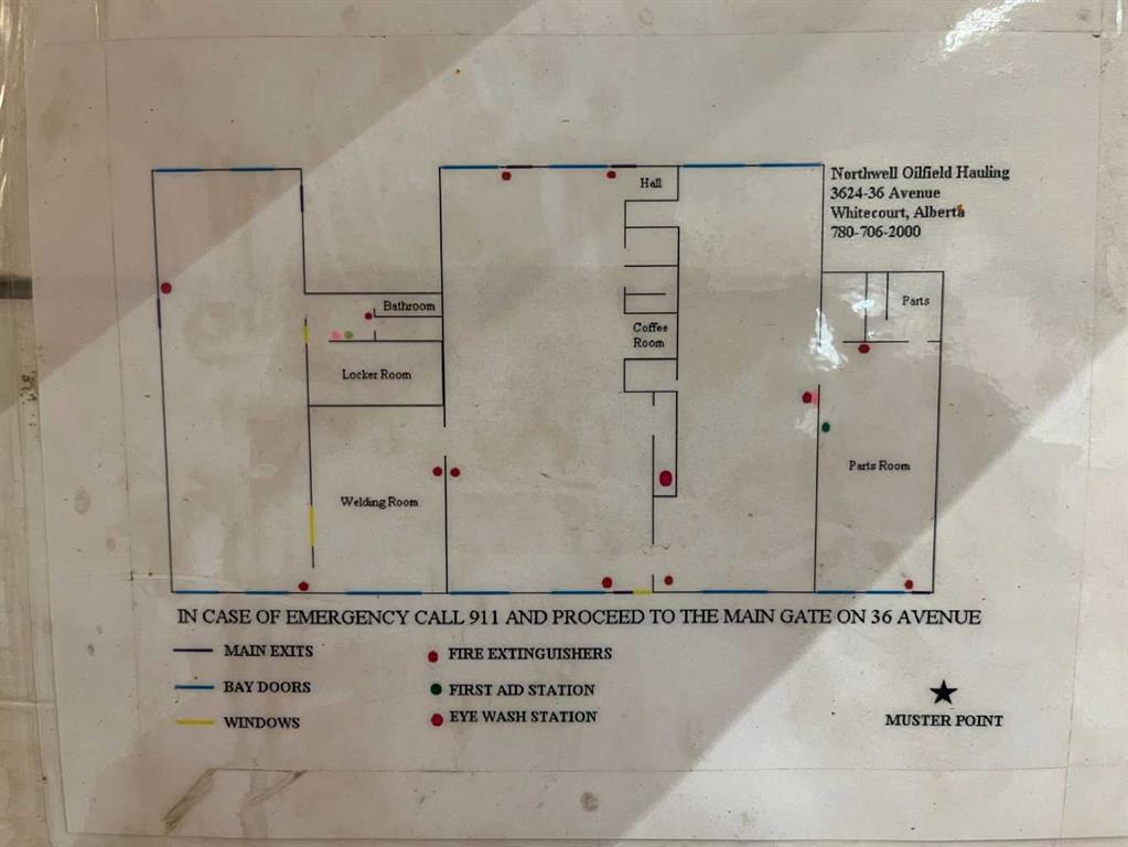 Freestanding shop building with a fully fenced and gated yard storage located in Hilltop Industrial subdivision. Has an 80 foot drive through washbay with 14 and 16 foot overhead doors. Sumps, make-up air and exhaust fans throughout the shop. Separate office building with 10 offices and a large boardroom