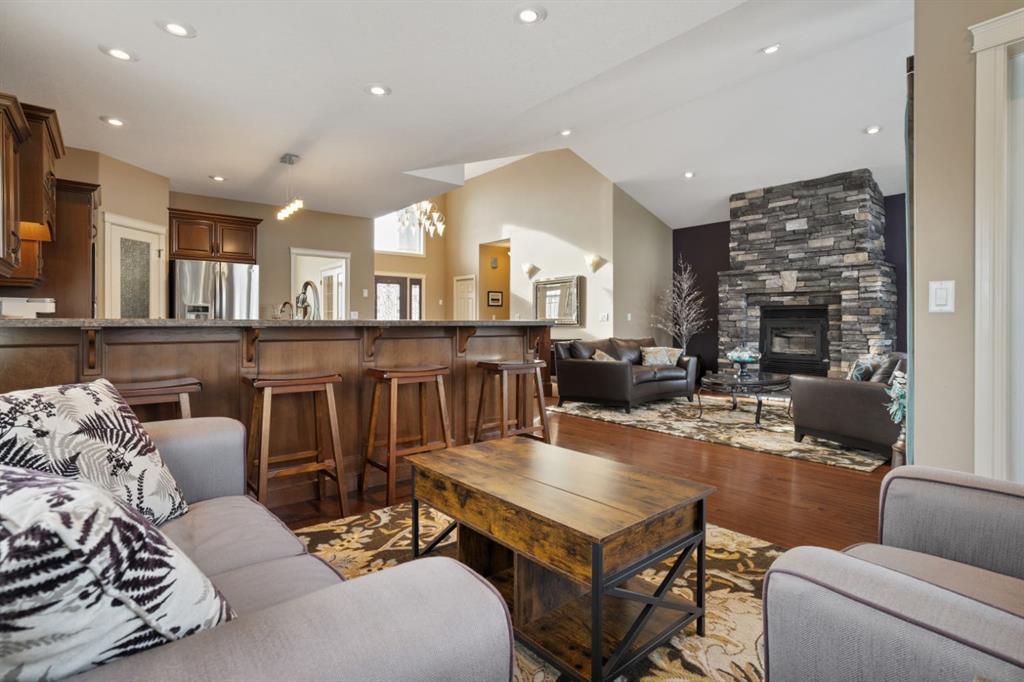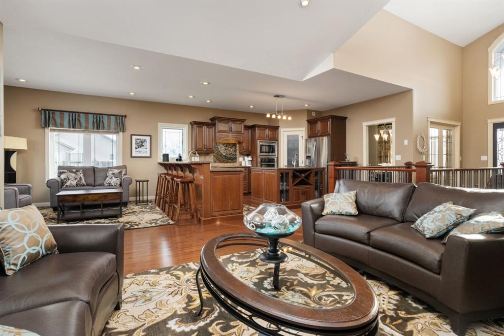 Welcome Home to Pure Elegance. This Custom Built Battle River Home is pristine and ready to impress. Backing a green space and adjacent walking trails. This home has so much to offer with over 1900sqft, Triple Garage with infloor heat, hardwood/tile floors, Stucco exterior, Triple pane windows, Full Basement Finish and many more features you're going to love. From the front entry you'll immediately know this home is special with its 9ft ceilings plus vaults - the eye line carries from front to back with ton...