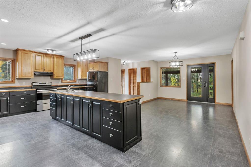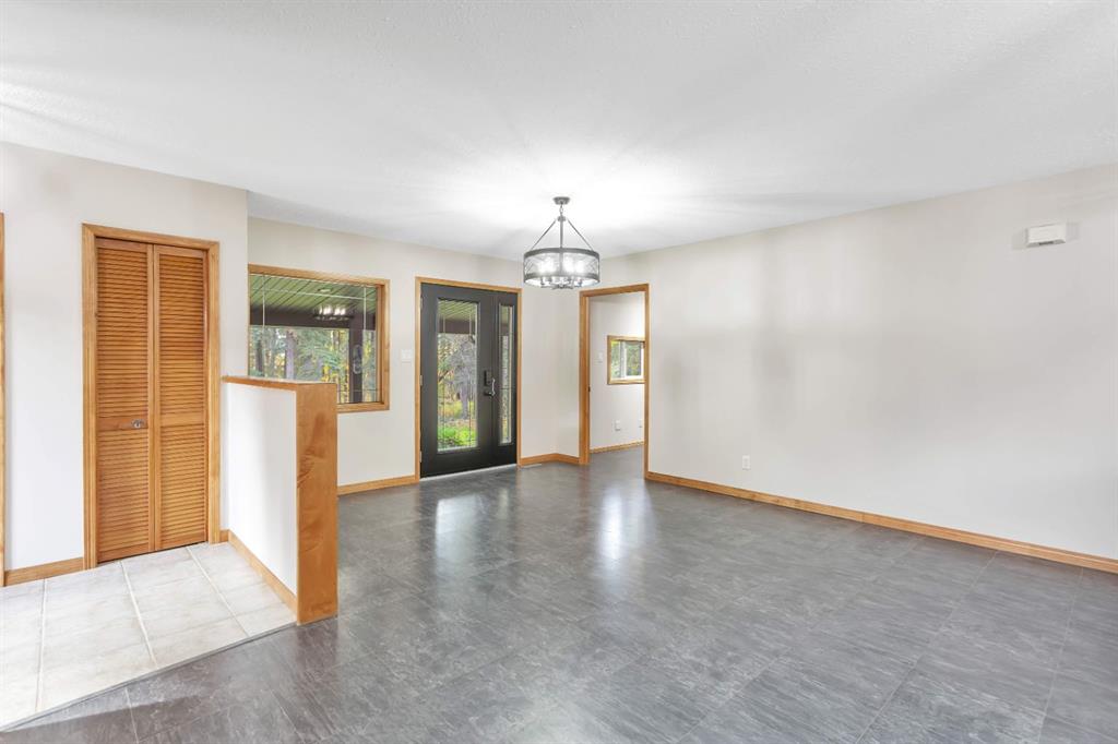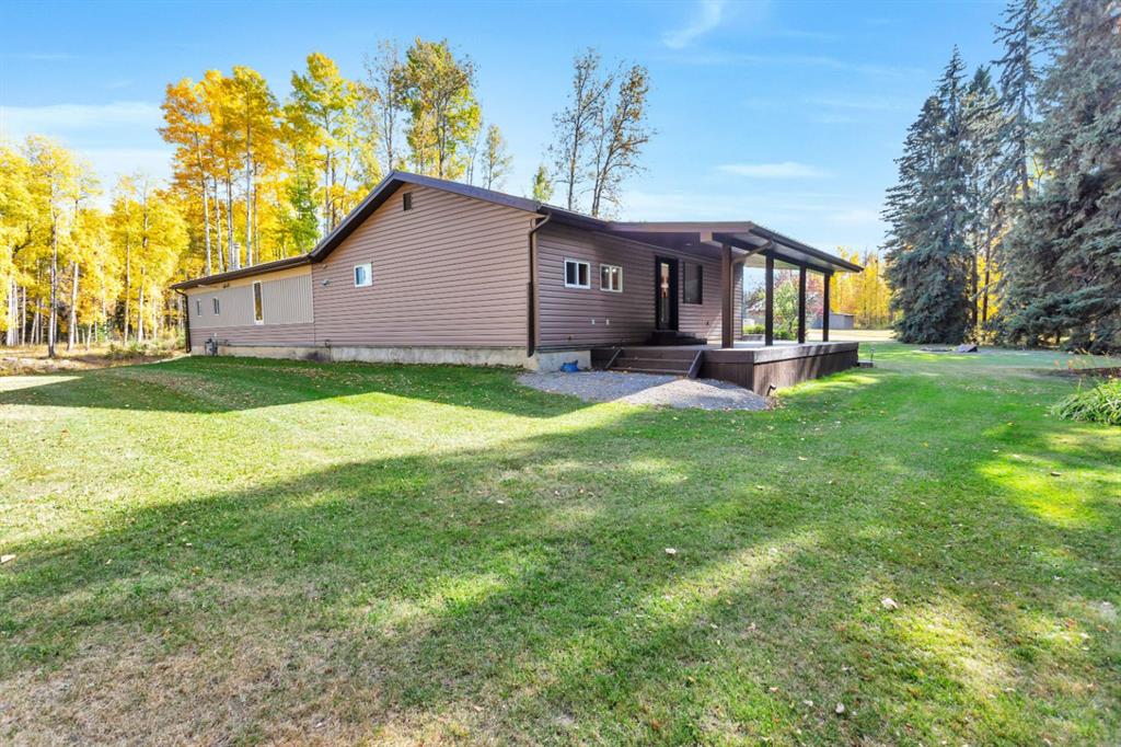 Only minutes from Rocky, located on a quiet no-exit road with easy access to Hwy 11, this 8 acres is private and beautifully landscaped. The property offers a peaceful rural lifestyle surrounded by mature trees and established perennial beds. The spacious 2,072 sq ft bungalow is all on one level and features a large entryway with excellent storage and a huge kitchen with a central island and walk-in pantry. Patio doors off the dining area lead to a covered deck overlooking the side yard. The living room is ...