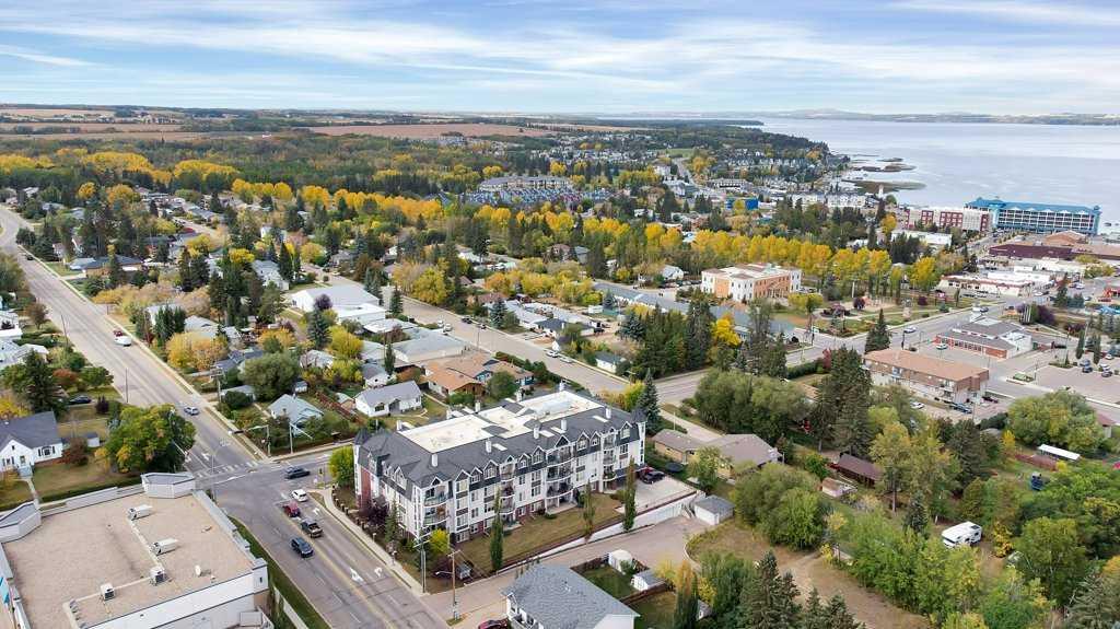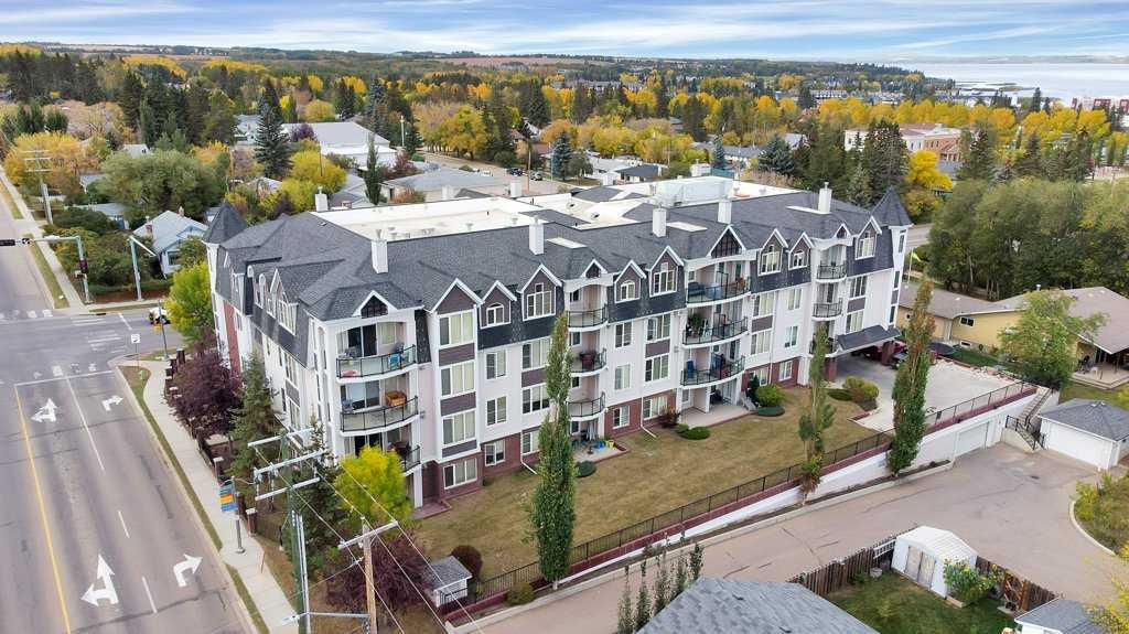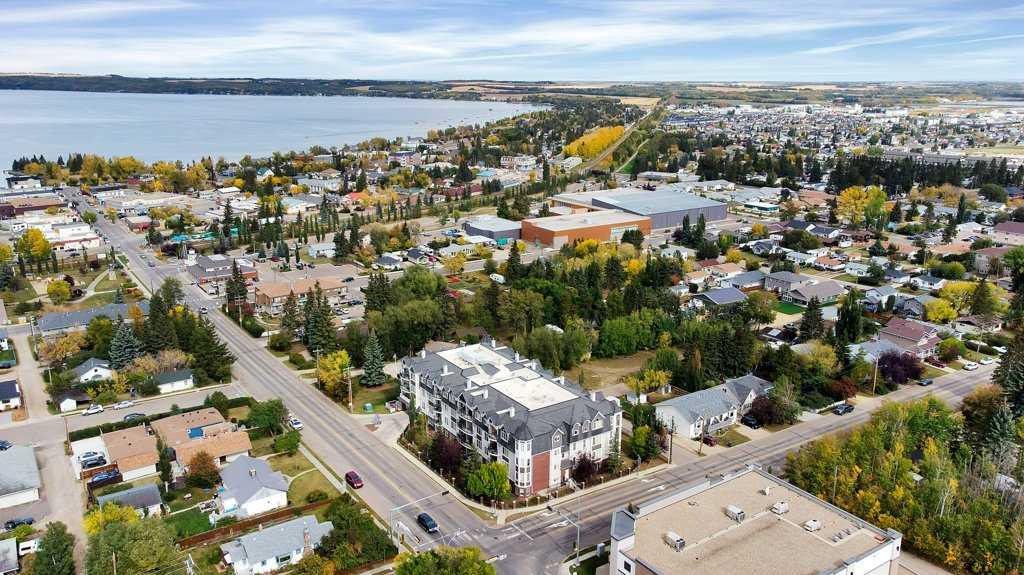 Now offering a "Top Floor" unit with 2 titled underground heated parking stalls in Sylvan Lake, AB. This well maintained unit features granite counter tops in the kitchen and bathrooms. A gas fireplace in the living room with a peaked ceiling. 2 bedrooms and 2 (4pce) bathrooms. In suite laundry room. Balcony with lake views. Enjoy a short walk down to Lakeshore Drive and take in the beach, gift shops and a variety of restaurants. Sylvan Lake offers plenty of amenities and activities.