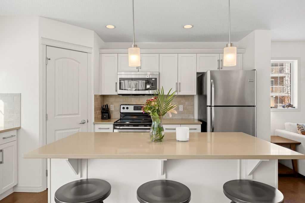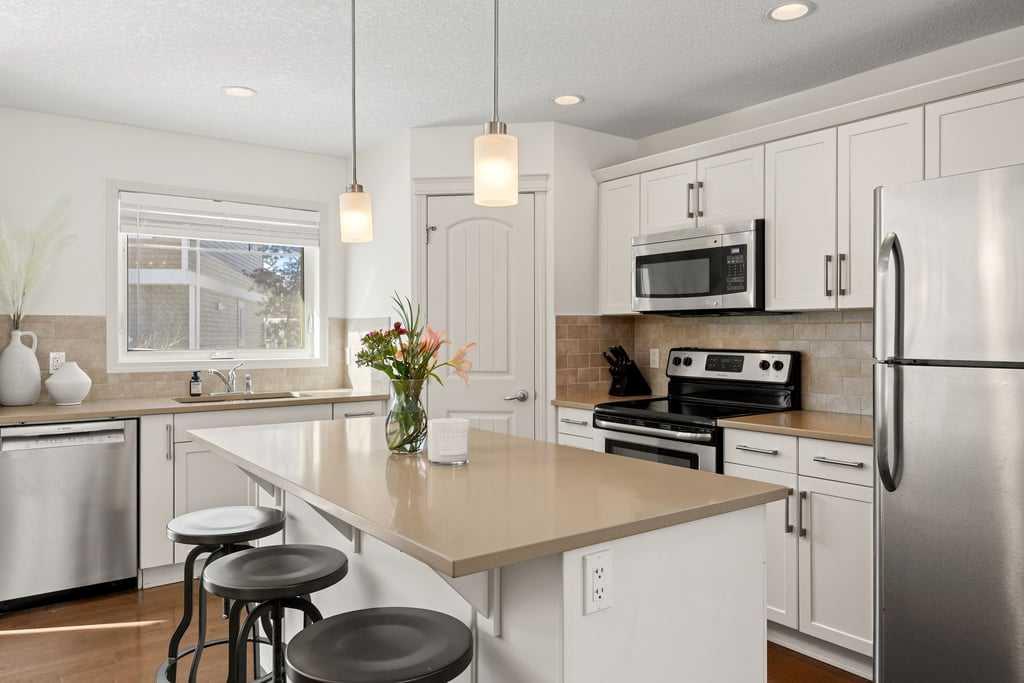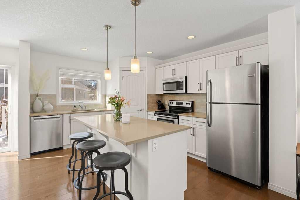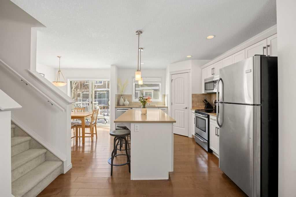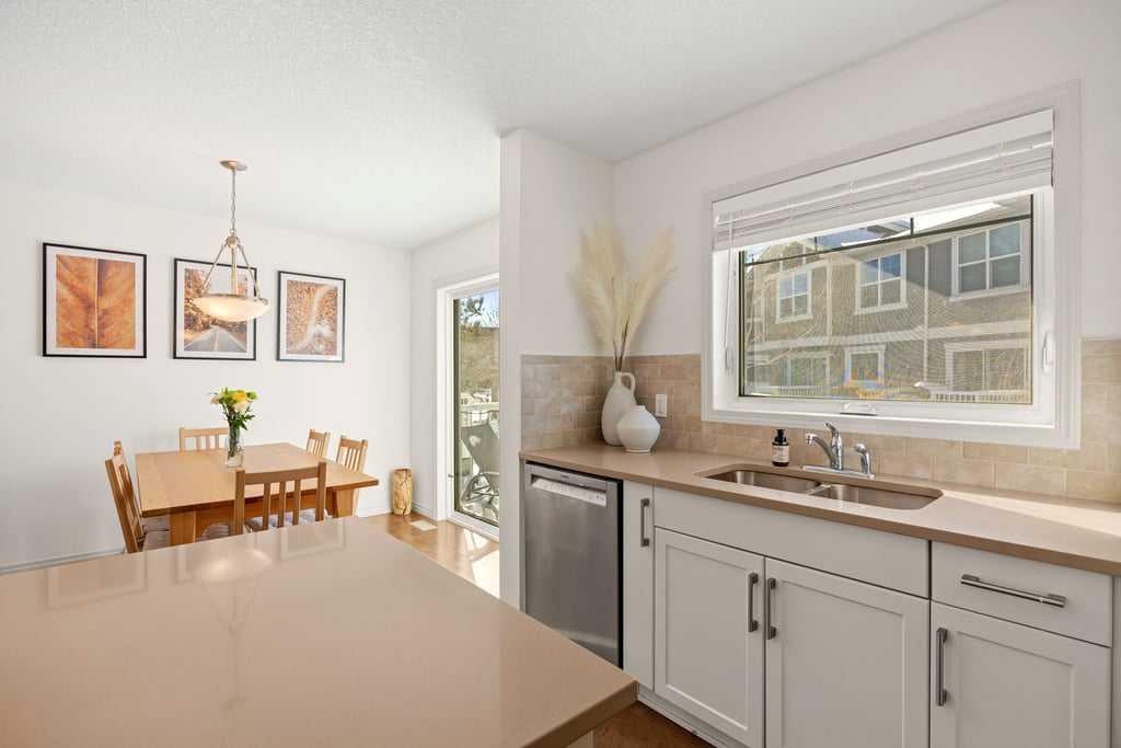 **OPEN HOUSE - Sunday, Mar 1 (12-2pm)**Welcome to this bright end-unit townhome in the heart of Cranston, backing onto the complex’s green belt for added space and privacy. Thoughtfully maintained and refreshed, the home features new paint throughout the main floor and upper level (February 2026), creating a clean, modern feel from the moment you step inside. The main floor offers an open, comfortable layout where the kitchen, dining, and living areas flow together seamlessly — finished with hardwood floori...