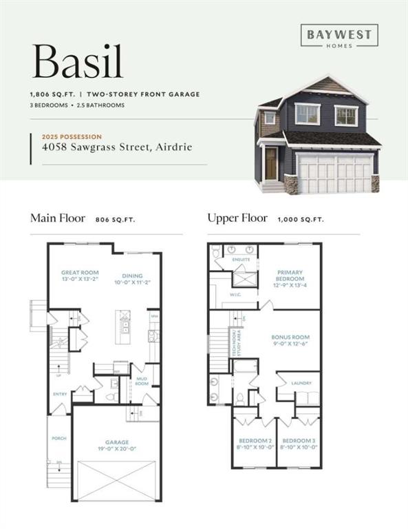 Meet THE BASIL — a beautifully designed and thoughtfully upgraded 1,872 SQ.FT. home offering 3 BEDROOMS, 2.5 BATHROOMS, an EAST-FACING BACKYARD on a SPACIOUS LOT, and a bright SUNSHINE BASEMENT. This home is ready for a QUICK POSSESSION, you can move forward with confidence knowing your next home is already ready for you. Built by BAYWEST HOMES (TRUSTED SINCE 1985), this home delivers quality craftsmanship and peace of mind with a 10-YEAR ALBERTA NEW HOME WARRANTY plus a 1-YEAR BUILDER WARRANTY. Step insi...