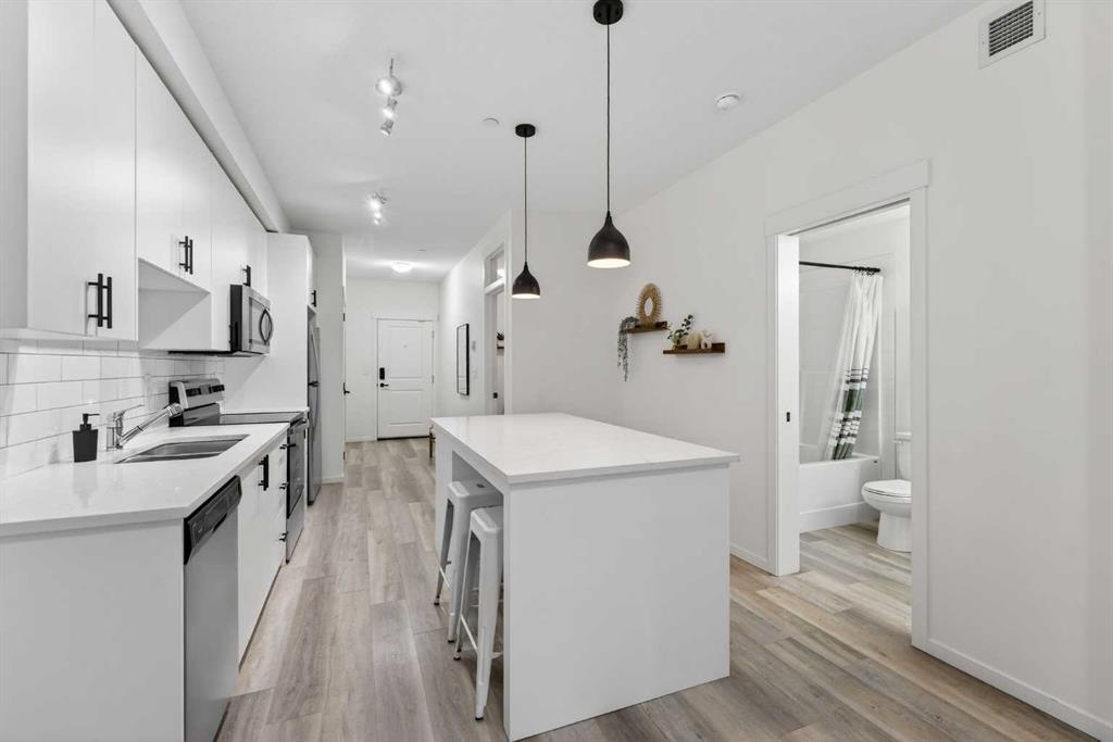 Bright, modern, and move-in ready! This immaculate 2 bedroom, 1 bathroom condo offers a fresh and stylish living space with thoughtful upgrades throughout. Featuring durable vinyl plank flooring (no carpet!), granite countertops, ceiling-height cabinetry, and a large kitchen island with built-in storage and seating for four — perfect for entertaining or casual dining. The spacious layout includes a full 5-piece bathroom with dual sinks and extra vanity storage, a walk-in closet off the primary, a large fron...