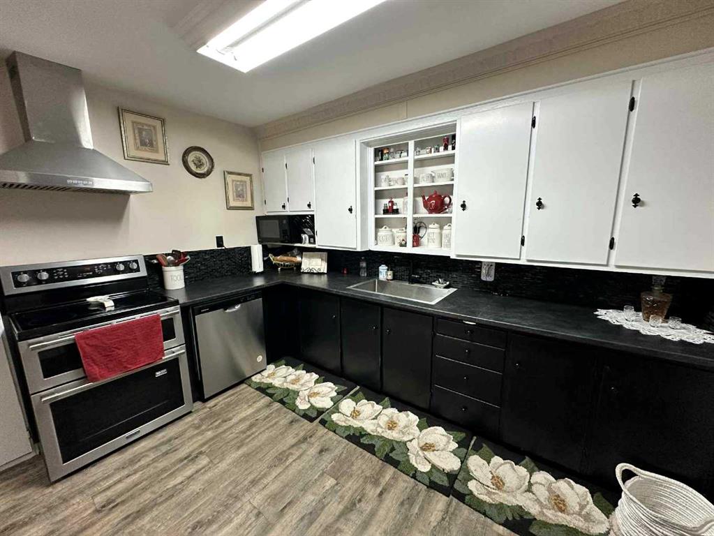 Extensively updated bungalow perfect for a small family or starter home! 2 bed, 2 bath, open concept. and main floor laundry. also a large storage room downstairs, 20x20 garage, large fenced yard, and a massive covered deck for additional living space. Renovations in 2024 include new appliances, flooring, paint, baseboards, exterior door, light fixtures, 3 piece ensuite, deck cover, back porch, walkways, fence, HWT, shed, 2 sump pumps, electric panel, insulation, vapor barrier, regraded back yard and more!