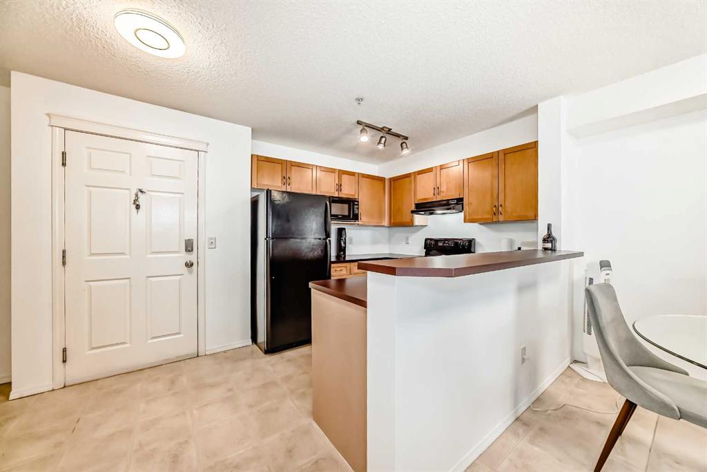 Immediate possession for this one bedroom condo with a den/eating area in popular Panamount Place! This unit has an open concept layout & features a kitchen with upgraded maple cabinets, black appliances & a breakfast bar which overlooks the living room with patio door to a spacious balcony. The Large bedroom is just off the living room with a walk-in closet & full en-suite bath. The unit also comes with a separate titled heated underground parking (stall #26) with storage space. Don't miss out, call to vie...