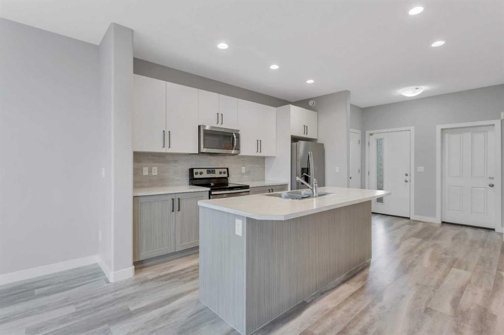 Welcome to this townhome built by Abbey Platinum Master Built and located in the desirable Panorama Estates. This freshly painted home features ABBEY'S AVANTA, 2 Storey Townhome floor plan and a kitchen with a full complement of appliances (plus washer and dryer), grey subway tile backsplash, dark stained cabinets with contemporary pulls, with large island and breakfast bar. A tour upstairs with 3 bedrooms in total, 2 nice sized bedrooms (perfect for young families) plus a primary bedroom with a 3 pc ensui...