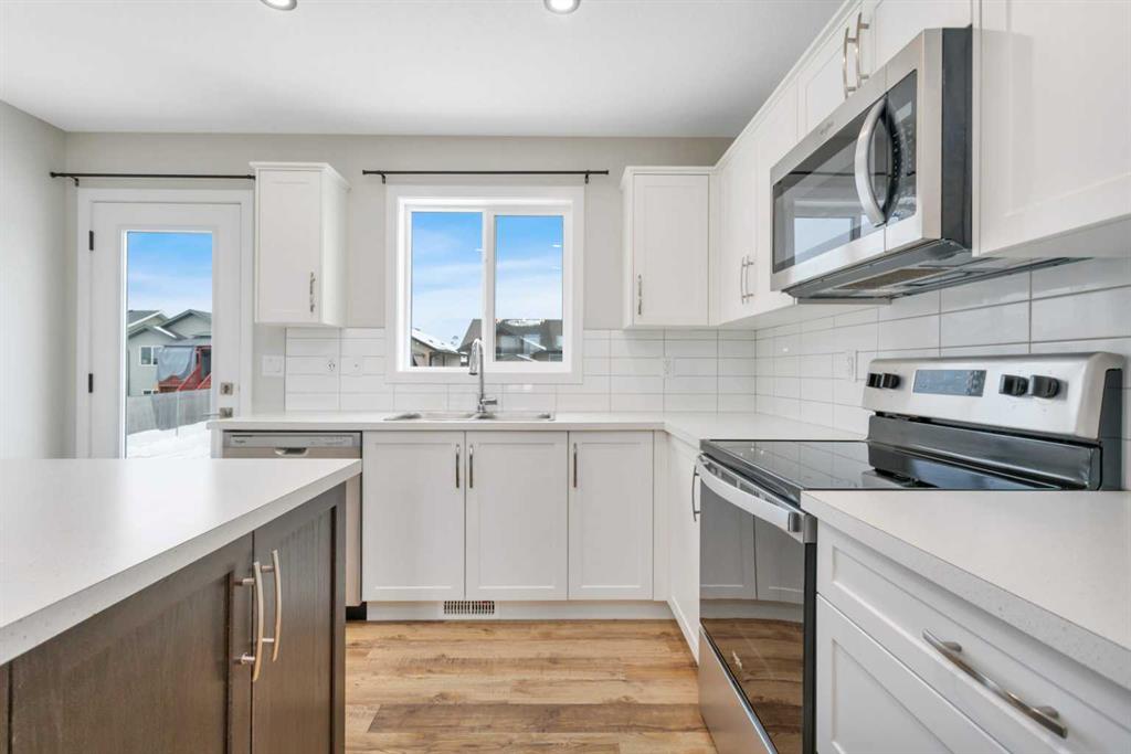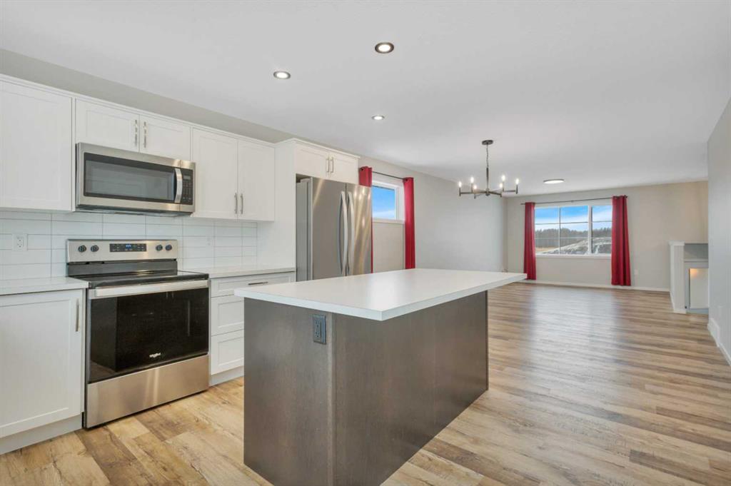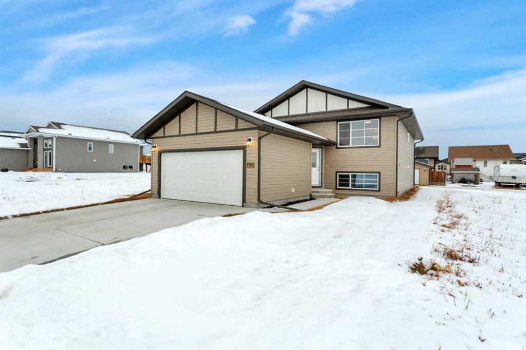 Welcome to this 2-year-old, 2024 Leabon-built bi-level located at 4424 53 Street in the desirable Creekside community of Rocky Mountain House. This home features an attached garage and a modern open-concept main living area encompassing the kitchen, dining, and living room. The kitchen is finished with white cabinetry, solid stone countertops, a central island, stainless steel appliances, a pantry, black light fixtures, and durable luxury vinyl plank flooring throughout the main level. The main floor offer...