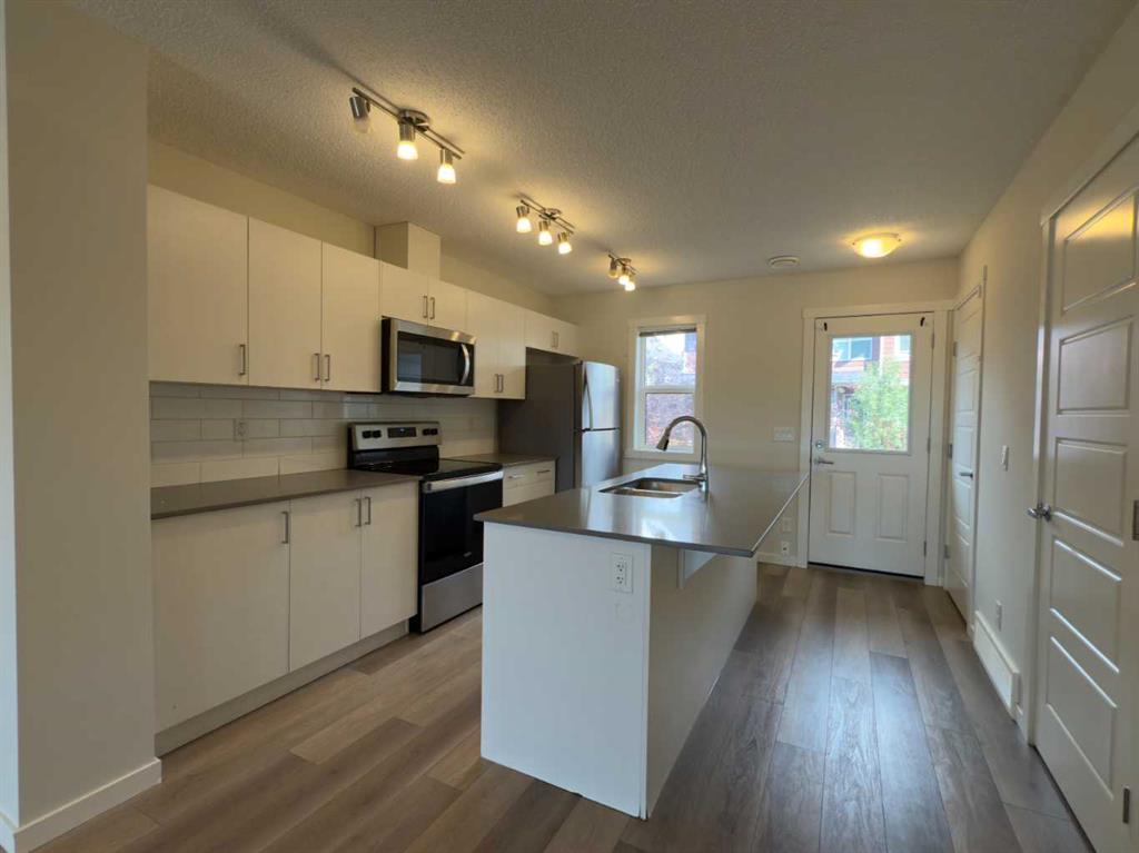 Welcome to 443 Cranbrook Square SE, wonderful 2 storey townhome in the highly sought-after community of Cranston’s Riverstone. Just steps away from Fish Creek Park, Bow River, surrounded with walking paths, this home offers a nature-filled, quiet location with all everyday conveniences close by. Step inside and you will be welcomed with huge open plan living room filled with natural light from large windows. Spacious white kitchen with pantry, central island, quartz counters and stainless-steel appliances o...