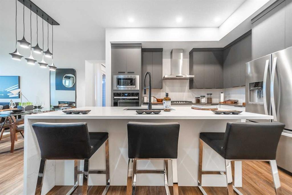 This home showcases on-trend, designer-curated interior selections tailored for a home that feels personalized to you. Energy efficient and smart home features. A beautifully upgraded home backing onto tranquil greenspace. This stunning property features an executive kitchen with built-in stainless steel appliances, gas cooktop, fridge with water and ice, a waterfall island with waste-bin pullout and a pantry with MDF shelving. Enjoy 10' ceilings in main living areas, LVP flooring, a main floor flex room, a...