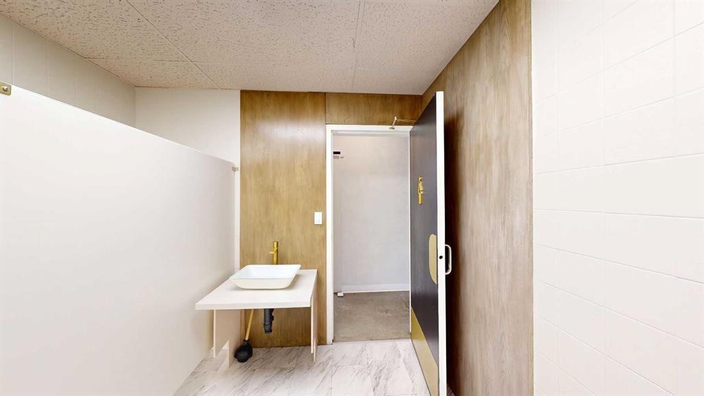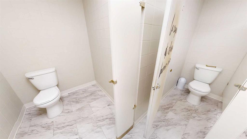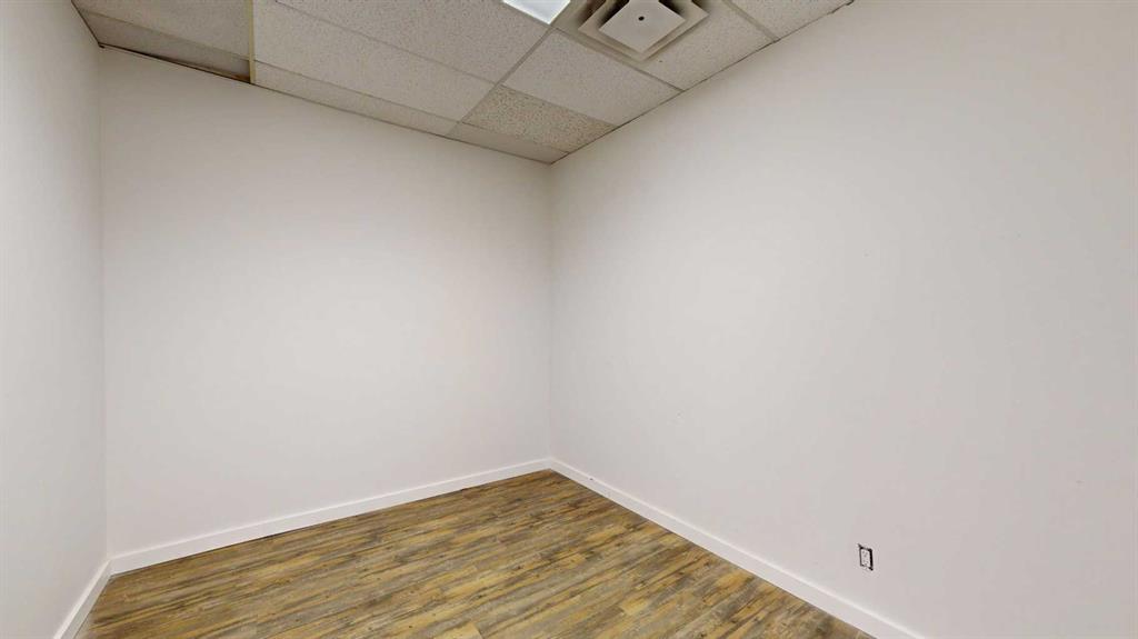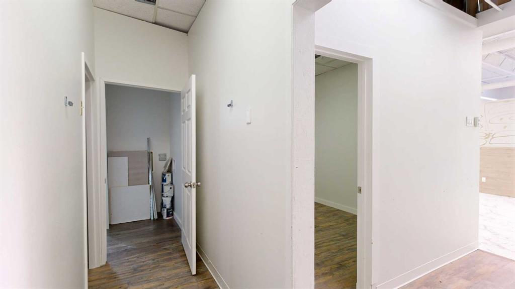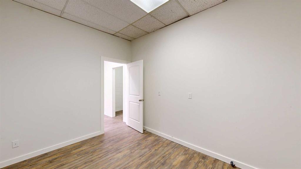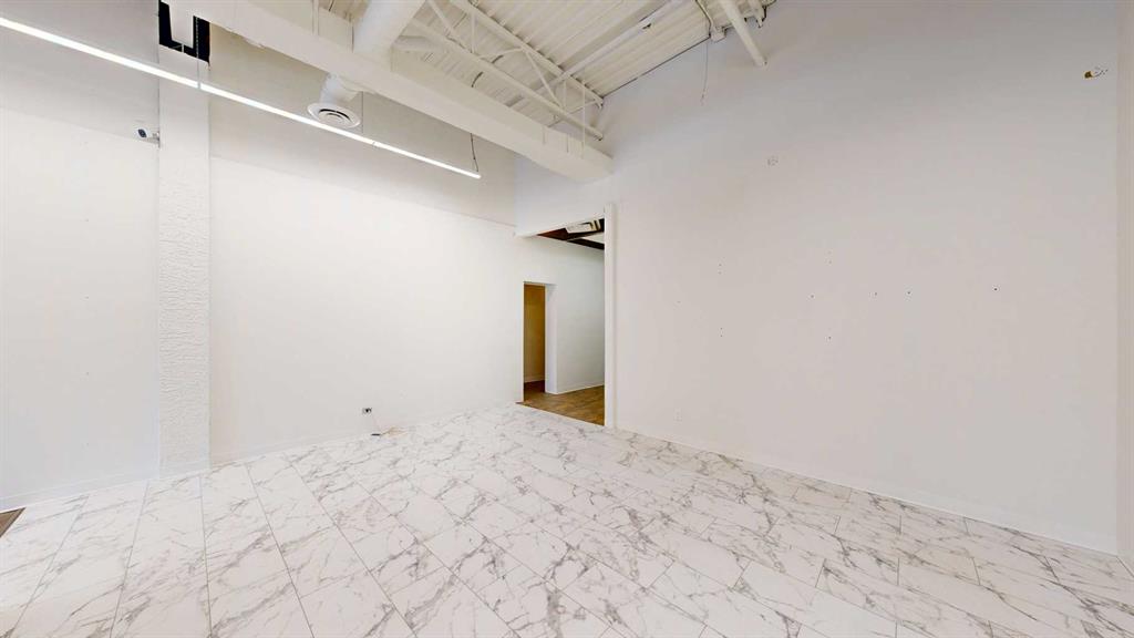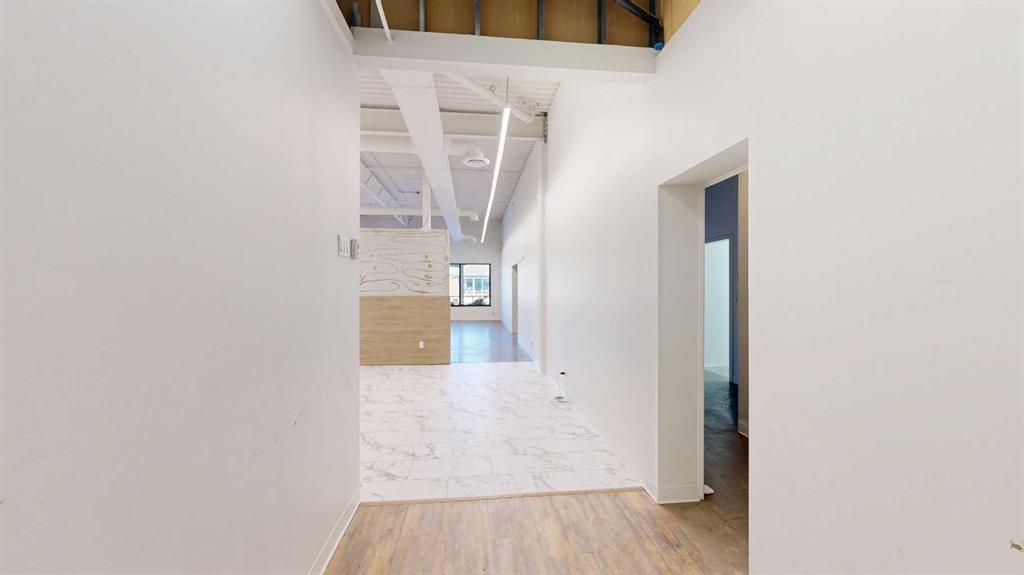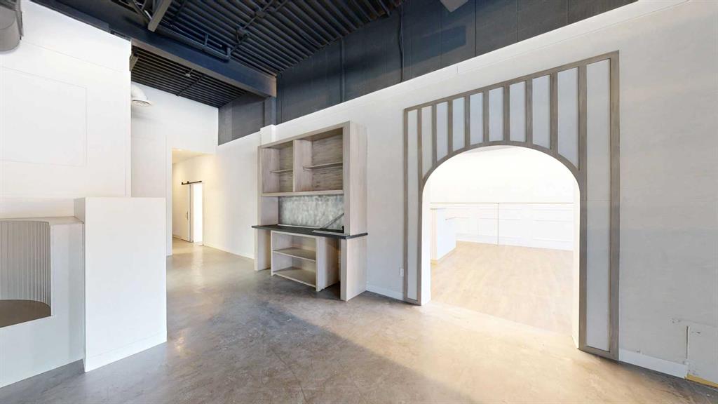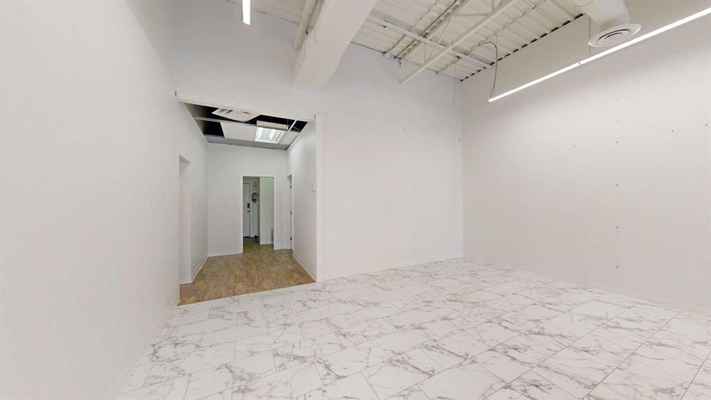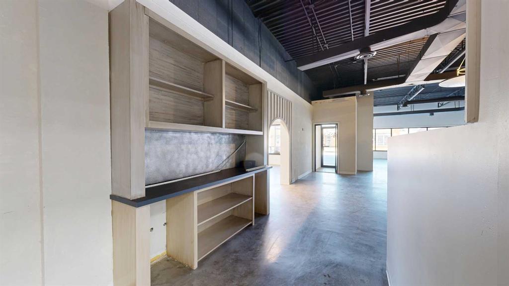 This expansive commercial property on main street in Stettler features a visually appealing and versatile layout suitable for a variety of business styles. The interior blends industrial and modern design, highlighted by exposed beams and ductwork in the high ceilings. Large windows fill the space with natural light for an open, airy feel. This property is partitioned into two main spaces, each with their own front and back doors. The south side has an open area with polished concrete floors, making the spa...