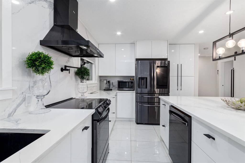 Must-see for owners and investors alike! Completely reimagined inside and out, this rare 5-bedroom, 4-bathroom (including 4 en-suites) bungalow with a separate entrance sits proudly on a massive 7,696 sq. ft. (70’ x 100’) lot — one of the largest in the area. The space, design, and versatility of this home set a new standard for comfortable, stylish, and profitable living. The main level (approx. 1,300 sq. ft.) showcases a stunning open-concept design highlighted by 24 x 24 designer tiles, custom millwork, ...