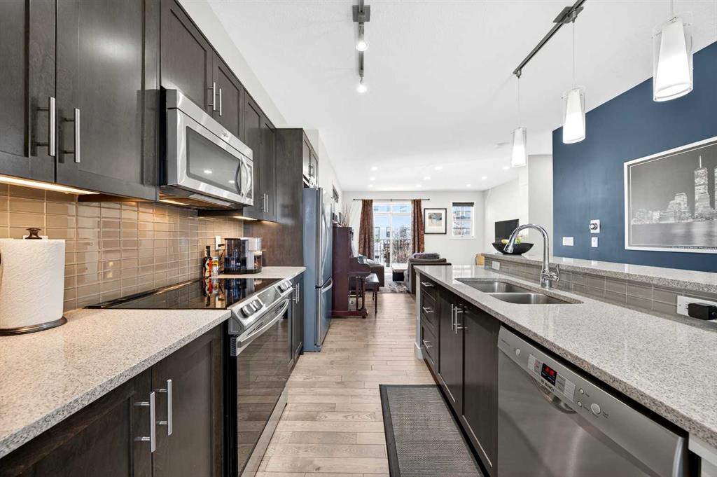 Discover this stunning End-Unit Townhouse in Nolan Hill, backing onto a peaceful Pond, Green Space, and Walking Paths—no neighbors behind! This home features 3 Bedrooms, 2.5 Baths, and 1,546 sq. ft. of thoughtfully designed living space. Step into the Main Floor with 9’ ceilings and gleaming hardwood floors throughout the Open-Concept Layout. The Kitchen showcases a Central Island, Raised Eating Bar with Quartz Countertops, Stainless Steel Appliances, plus a convenient Pantry. The Living Room includes a Ju...
