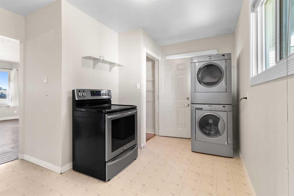 Welcome to 5120 47 street. This home has 2 bedrooms and 1 4 piece bathroom on the main floor . The Master Bedroom is quite spacious. There is currently a washer dryer in the kitchen. This can be moved downstairs where there are other hooks ups in the basement. The basement was previously rented out and was in need of renovations. It is currently been mostly removed. There is still plumbing , electrical with stove plug and framing from previous 1 bedroom, 1 3peice bathroom, kitchen and living room. The furn...