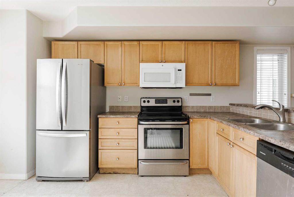 Welcome to Winchester Villas—END UNIT WITH ATTACHED GARAGE: an opportunity to get into the market at an accessible price point in a well-located, established complex. This 3-bedroom townhome offers great potential for buyers willing make some personal touches and make it their own, or for investors looking to add value. The upper main level features a functional layout with an open-concept living and dining space, complete with a cozy gas fireplace and a kitchen that includes an eat-up bar and ample cabinet...