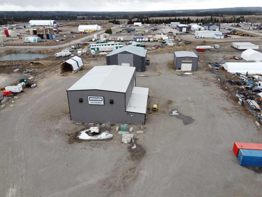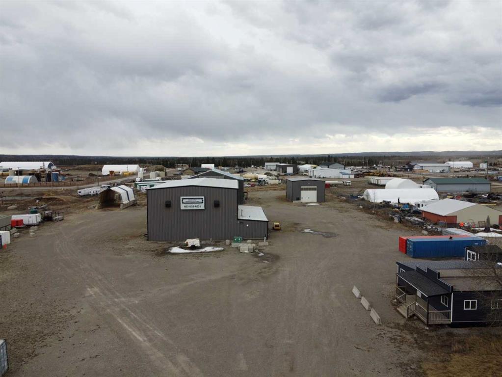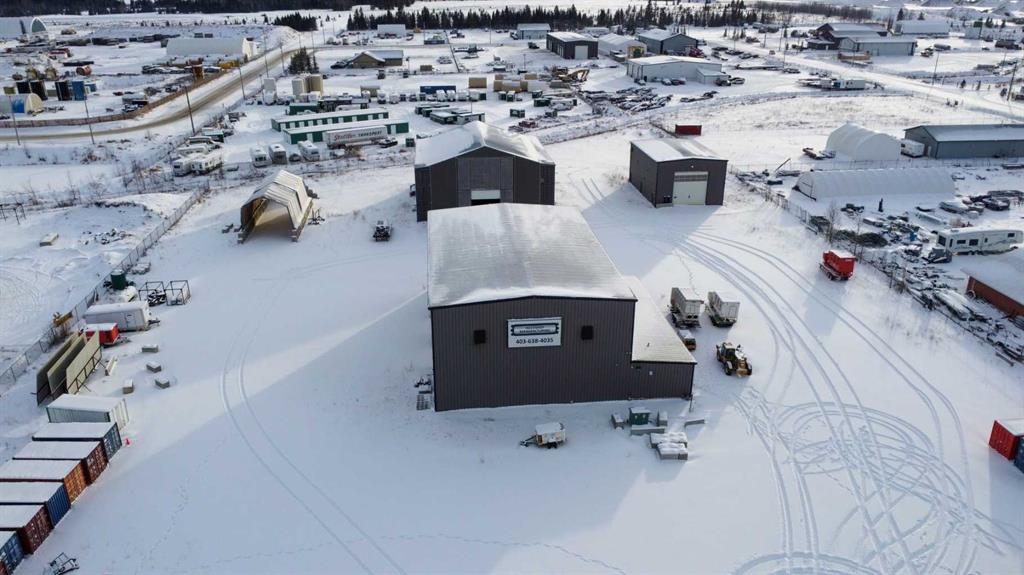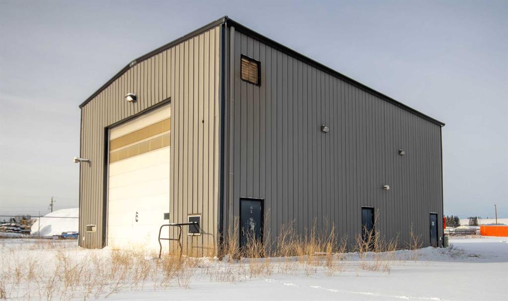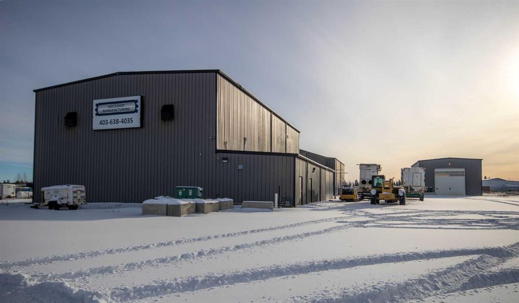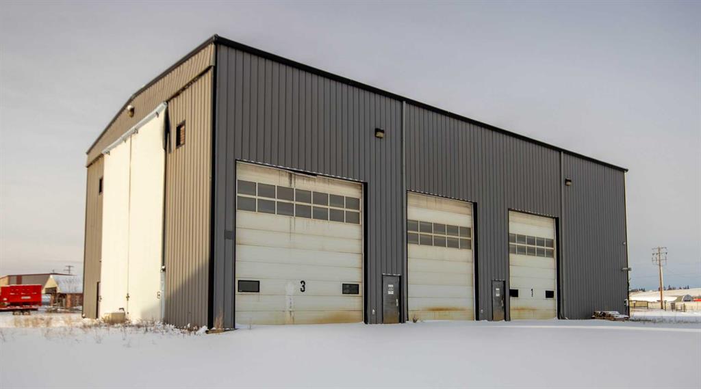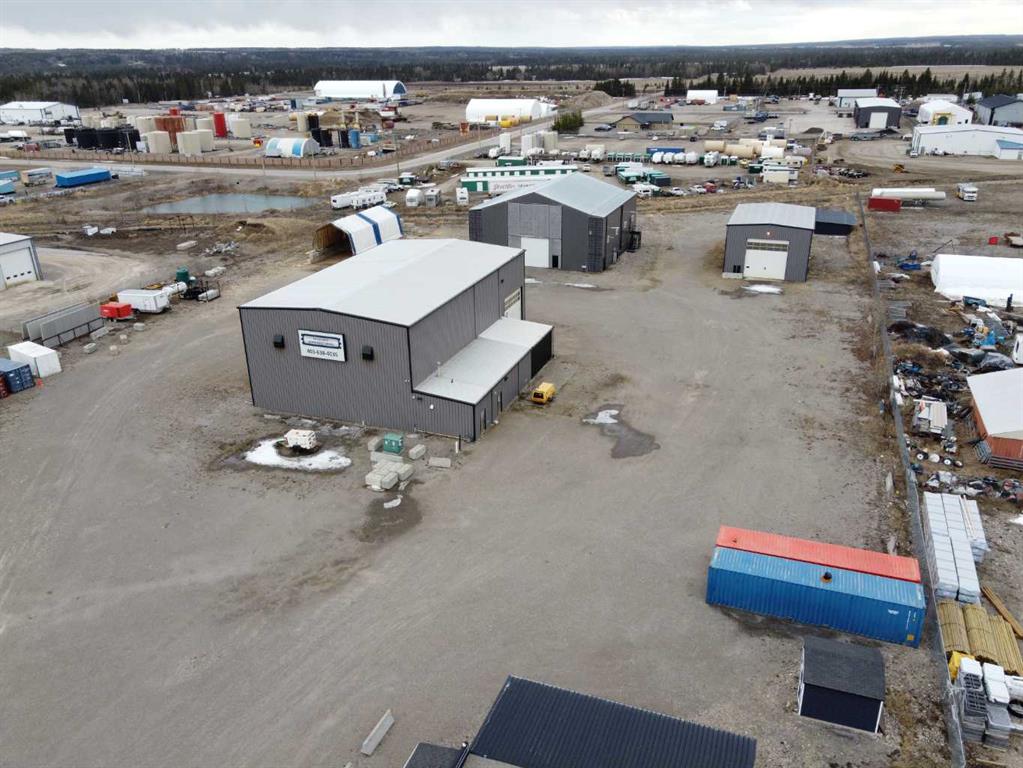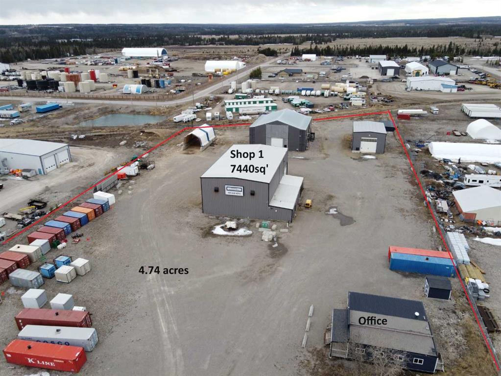 For Sale · 4.74+/- Titled Acres in a fenced & gated industrial parcel just west of Sundre, AB. Property boasts a 7,440 +/- sq ft heated Shop #1 with an attached axillary building that has a washroom, utility room, office, & mechanical bay. Building has 4 (20’x20’ doors) & 1 (30’x30’ door) on south end & an overhead crane. Property has an administrative office,which is 1579 +/- sq ft & contains 6 office spaces, meeting room, reception area, print area, staff lounge & washroom. There are two other large shops...