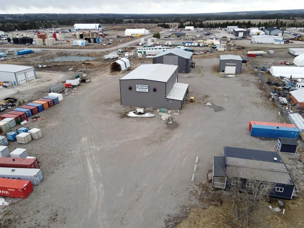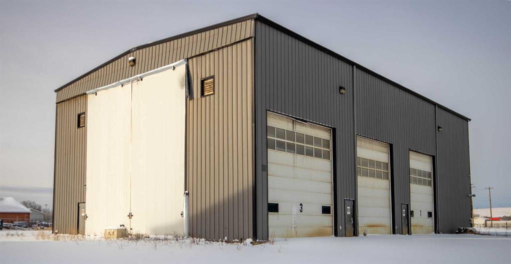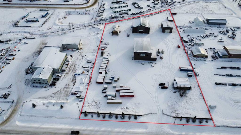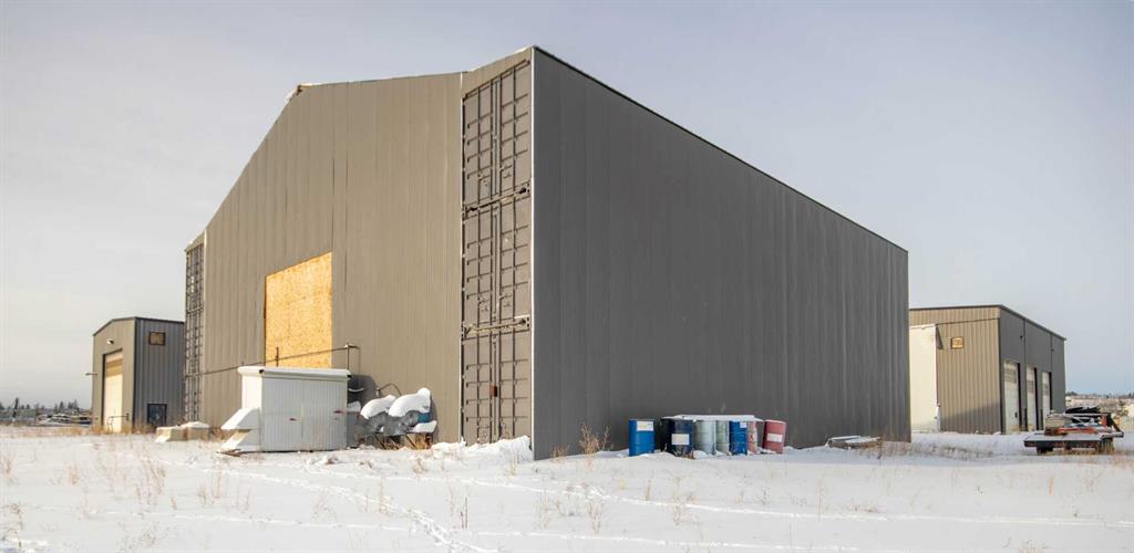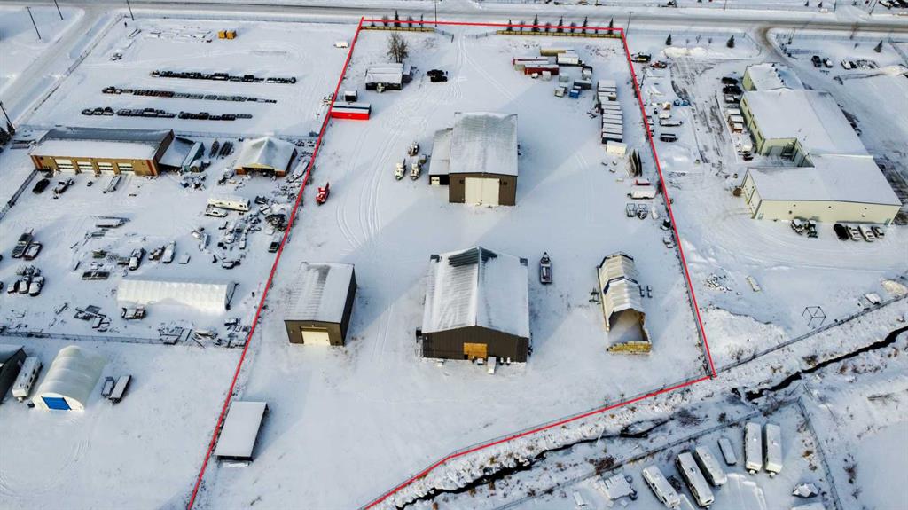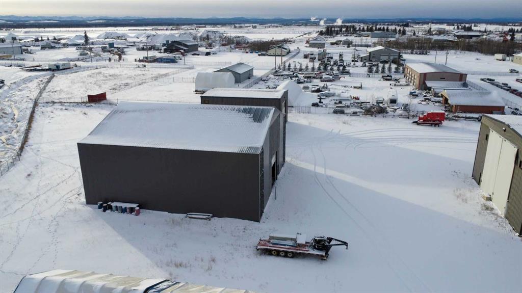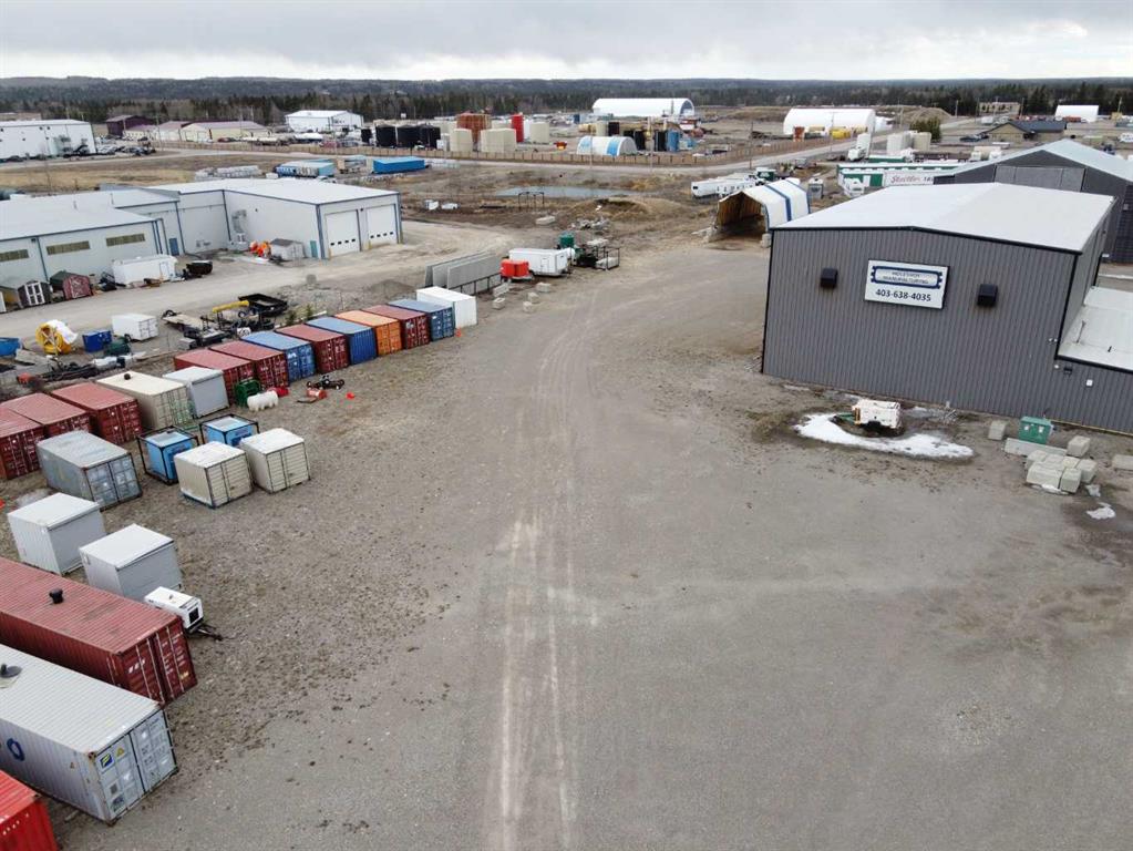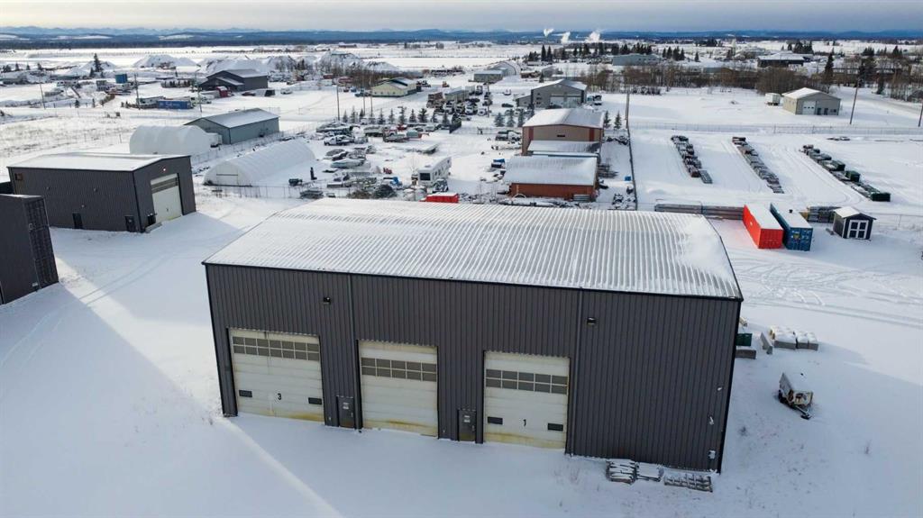 For Sale · 4.74+/- Titled Acres in a fenced & gated industrial parcel just west of Sundre, AB. Property boasts a 7,440 +/- sq ft heated Shop #1 with an attached axillary building that has a washroom, utility room, office, & mechanical bay. Building has 4 (20’x20’ doors) & 1 (30’x30’ door) on south end & an overhead crane. Property has an administrative office,which is 1579 +/- sq ft & contains 6 office spaces, meeting room, reception area, print area, staff lounge & washroom. There are two other large shops...