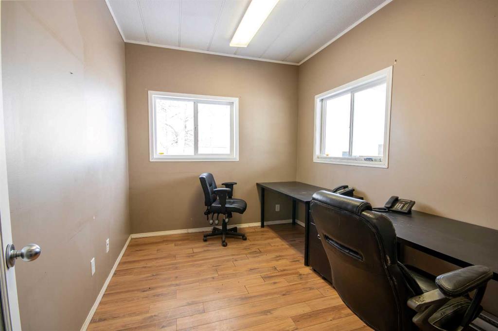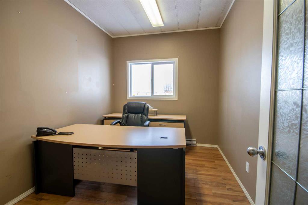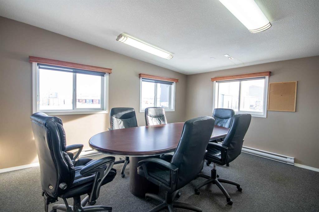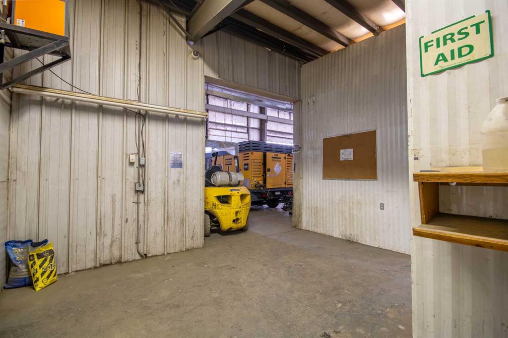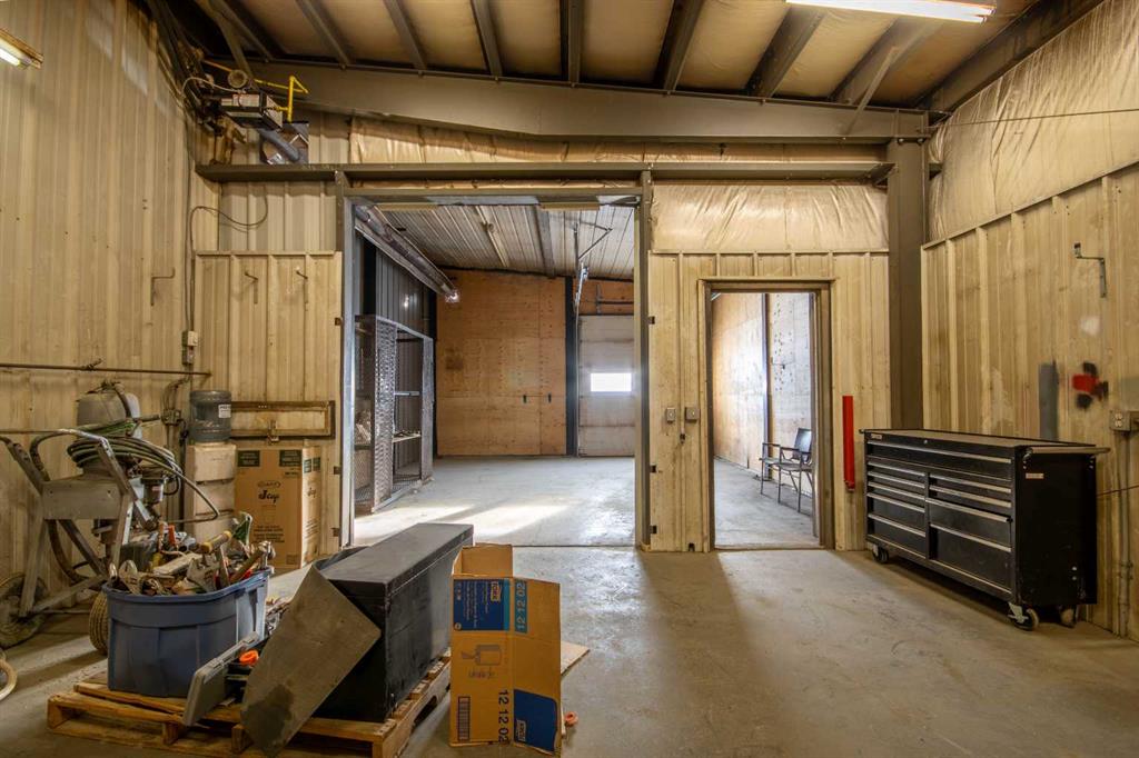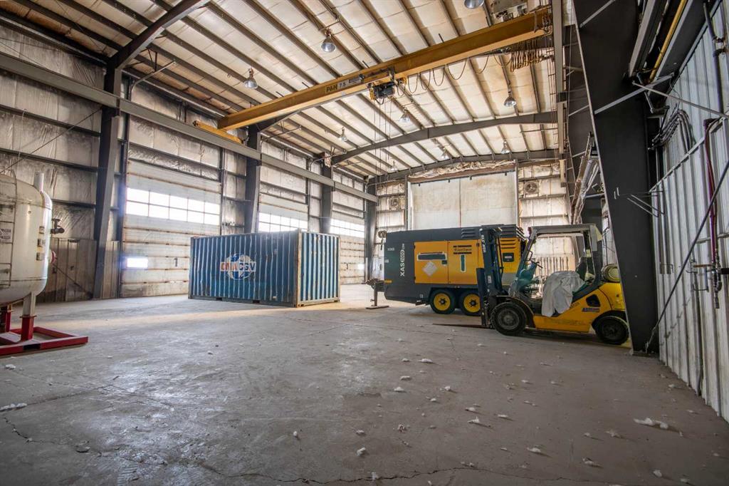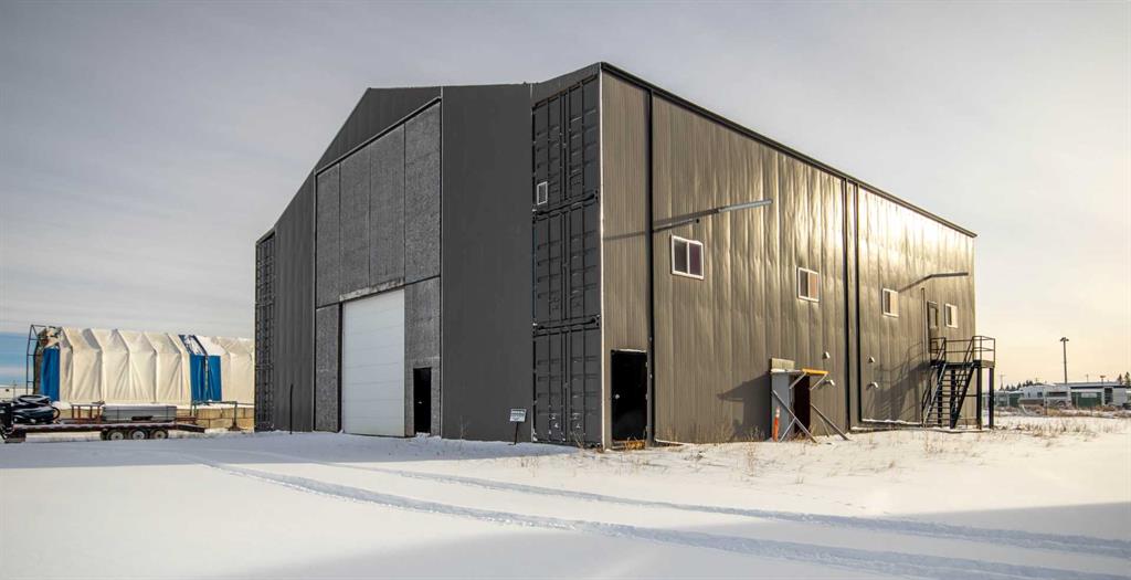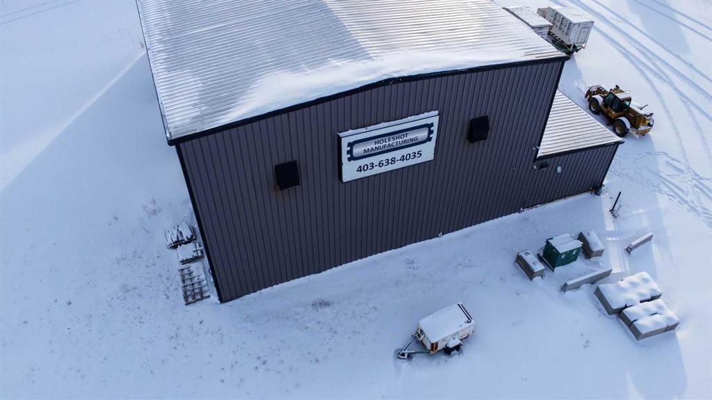 For Sale · 4.74+/- Titled Acres in a fenced & gated industrial parcel just west of Sundre, AB. Property boasts a 7,440 +/- sq ft heated Shop #1 with an attached axillary building that has a washroom, utility room, office, & mechanical bay. Building has 4 (20’x20’ doors) & 1 (30’x30’ door) on south end & an overhead crane. Property has an administrative office,which is 1579 +/- sq ft & contains 6 office spaces, meeting room, reception area, print area, staff lounge & washroom. There are two other large shops...
