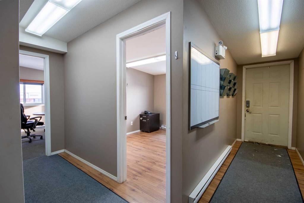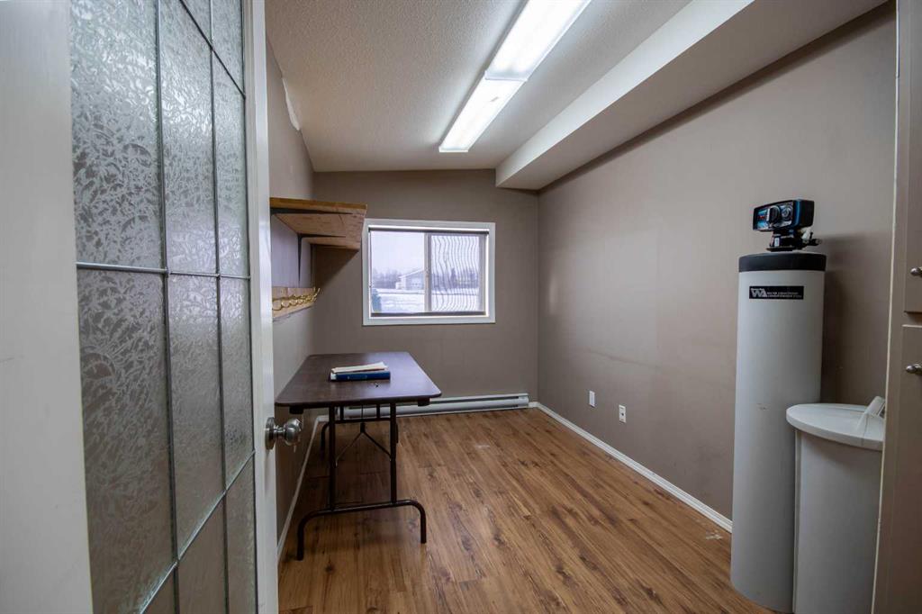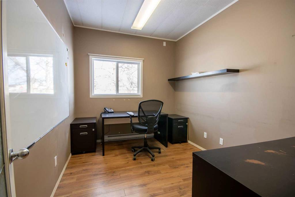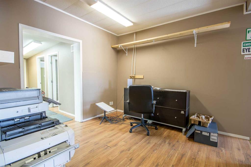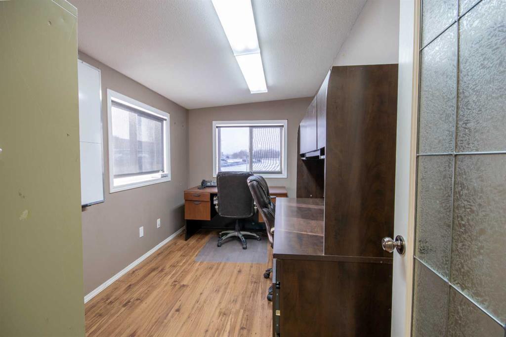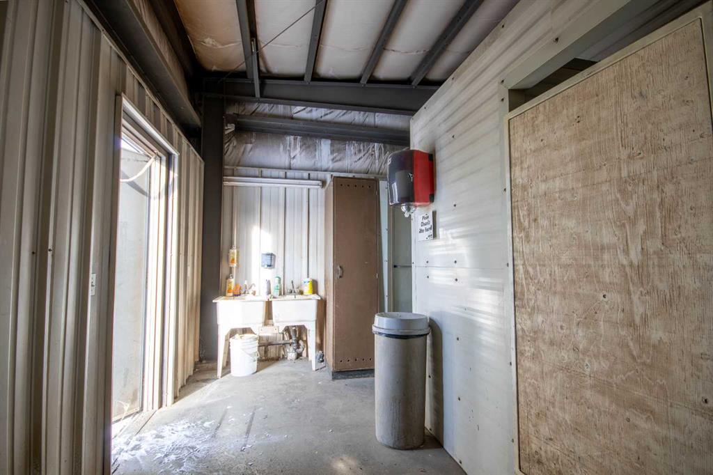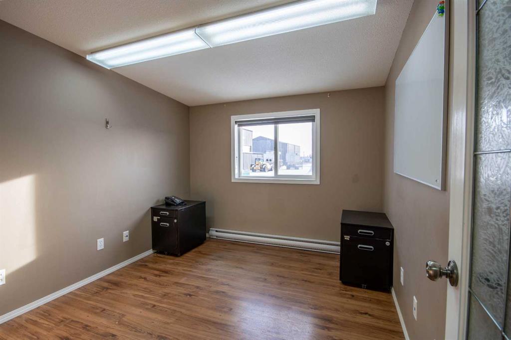 For Sale · 4.74+/- Titled Acres in a fenced & gated industrial parcel just west of Sundre, AB. Property boasts a 7,440 +/- sq ft heated Shop #1 with an attached axillary building that has a washroom, utility room, office, & mechanical bay. Building has 4 (20’x20’ doors) & 1 (30’x30’ door) on south end & an overhead crane. Property has an administrative office,which is 1579 +/- sq ft & contains 6 office spaces, meeting room, reception area, print area, staff lounge & washroom. There are two other large shops...