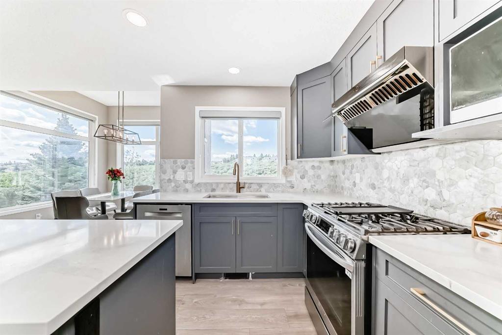 Rare!!! the beautiful renovated home in Edgemont with rare view of the RAVINE! this beautifully maintained home features newer flooring throughout the main floor,offering a bright, open and spacious layout. A dedicated den on the main floor provides the perfect space for working from home. massive windows in living room, kitchen, and dinning area, filled with natural light, let you enjoy the ravine. Renovated kitchen with stylish quartz countertops, newer gas stove. Step out from the dinning area onto the d...