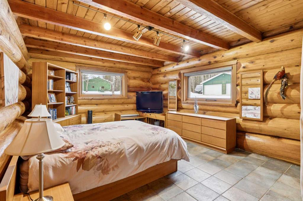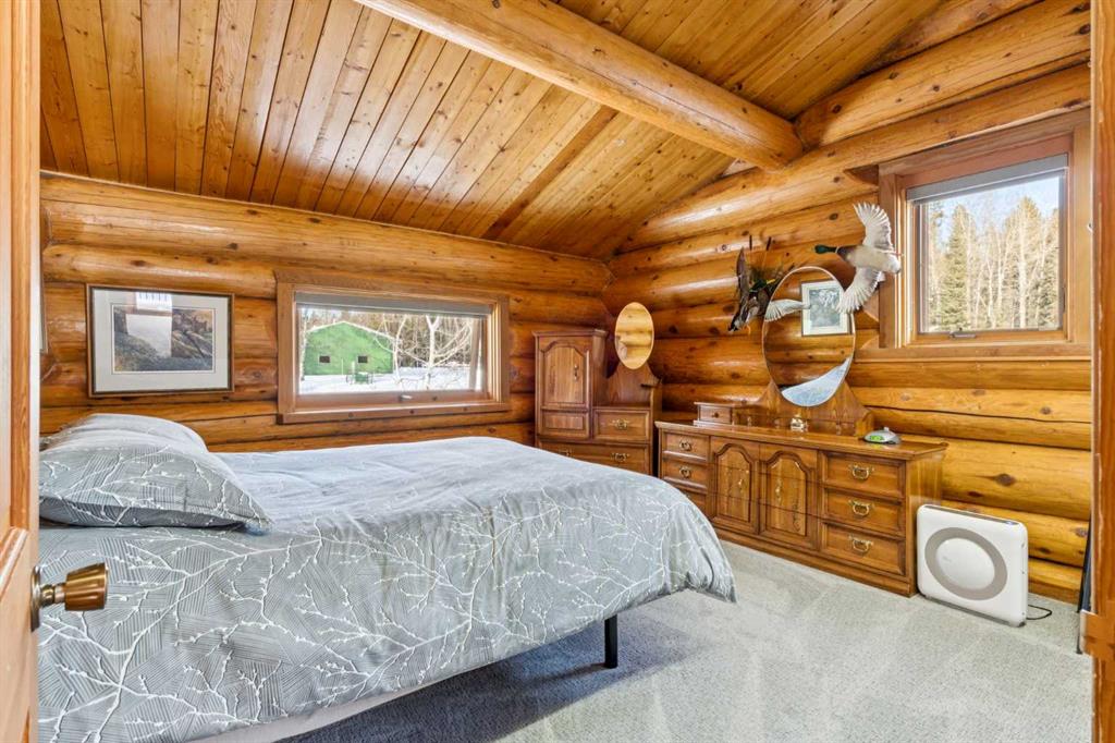 Set on 157 private acres in Mountain View County near Water Valley, this impressive country estate offers a stunning log home, quality outbuildings, productive hay land, and the year-round beauty of Big Prairie Creek winding through the property. A scenic, secluded driveway leads to a quiet homestead surrounded by willow, spruce, and poplar—an ideal rural escape with endless outdoor opportunities. The 5,583 sq ft log home, built in 1981 with a 2004 basement renovation, is bright, warm, and welcoming. South...
