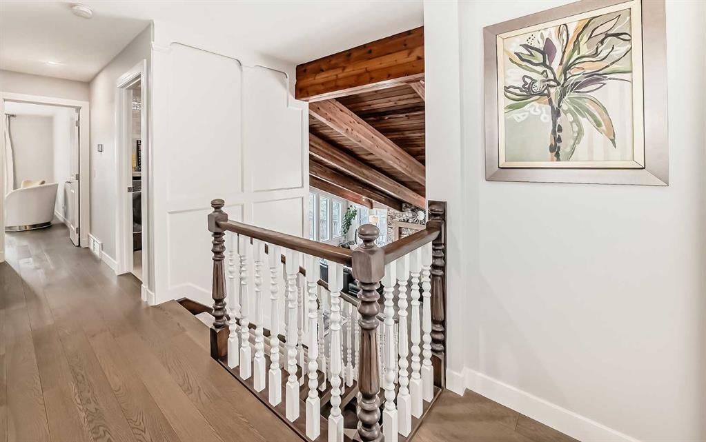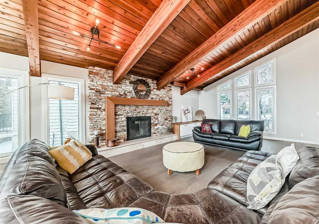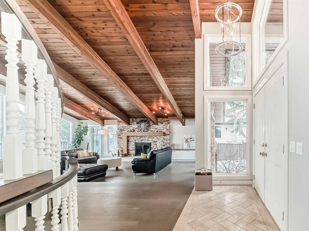 Fully renovated 3140sqft 2-storey split walkout in Patterson Estates - w triple attached garage on a 10,000sqft pie lot. This home is both elegant and majestic with large principal rooms: vaulted with exposed wood beams / circular staircase / flat finished ceilings / 3/4" engineered oak flooring / two wood burning fireplaces / white oak accents / and exquisite tile work throughout. The main floor alone is 2000sqft. There are a total of 5 bedrooms, 3 full and 1 half bath, 2 laundry rooms, and main floor de...