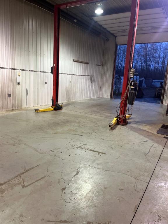 This is a great shop with many uses! With both office space, storage space, two bays and a very large gated yard, you can also take advantage of having a hoist, air compressor, office furniture, shelving and a shed included.