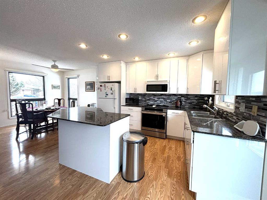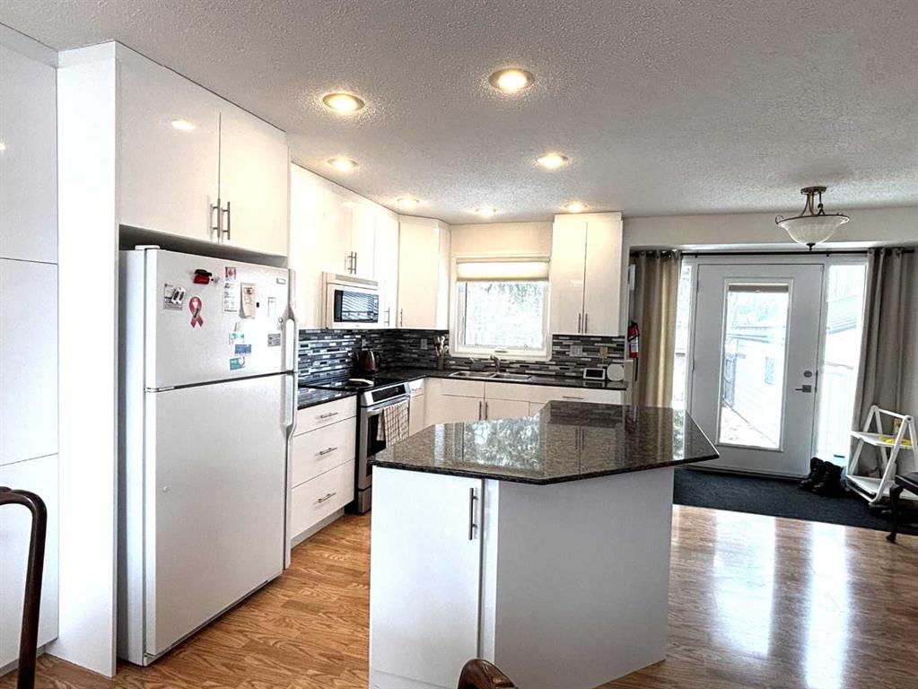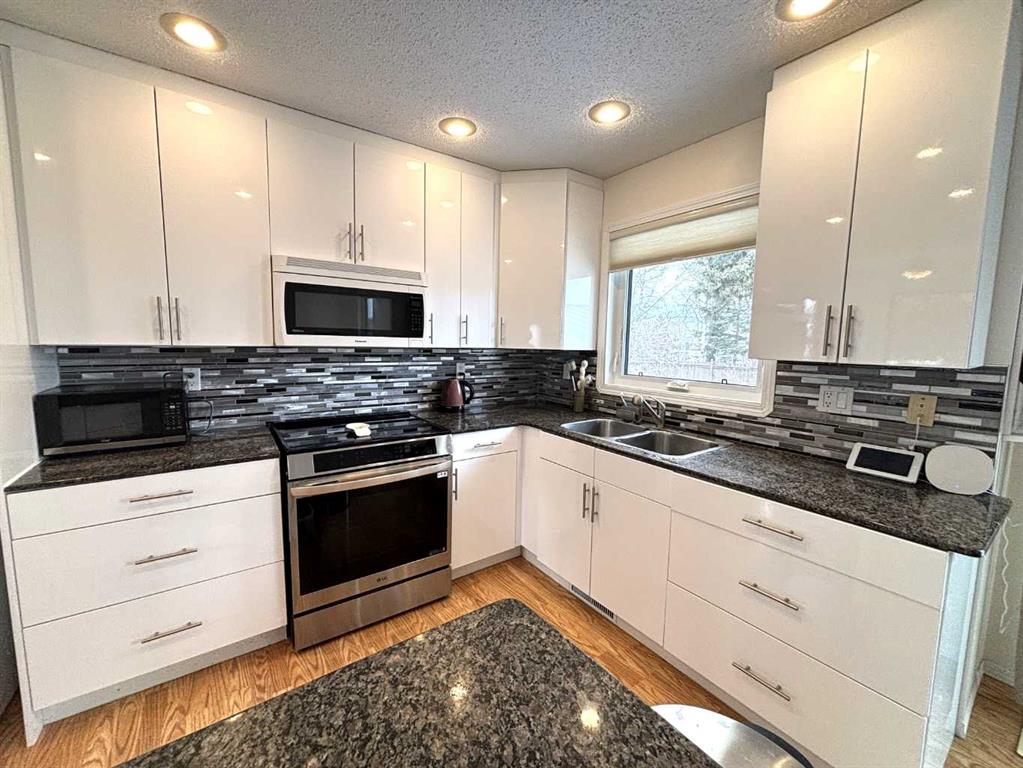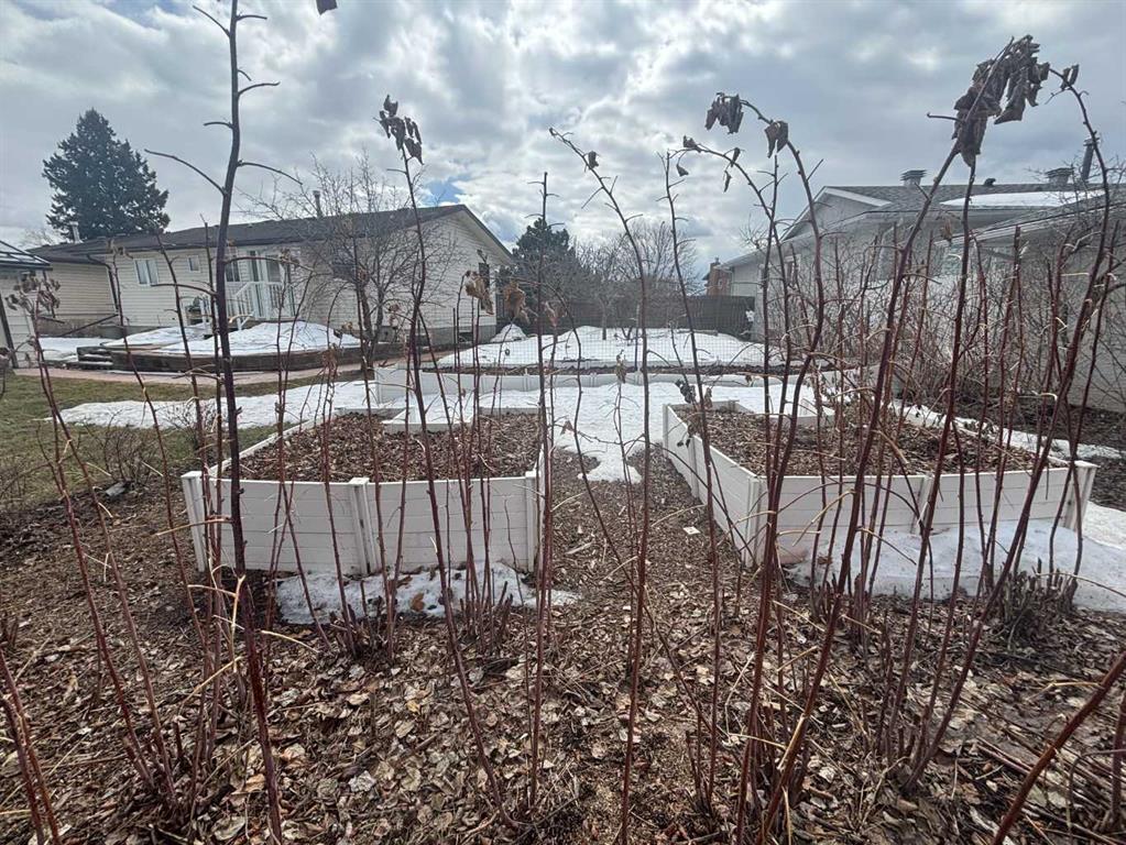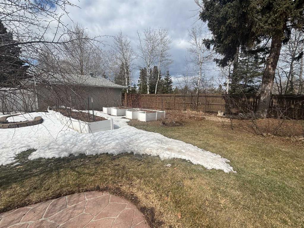 "SAME OWNERS- 40 YEARS - UPGRADED BUNGALOW -DOUBLE GARAGE- OVERLOOK THE GOLF COURSE !!!" This updated bungalow and double garage sits on a massive 11069 sq.ft. fenced lot and offers a front driveway, back alley access and has nobody behind you . These long term owners of 40 years have beautifully transformed this large fenced lot into a nature's paradise offering plum trees, saskatoons, honeysuckles, apple trees, red currents, cherry trees, raspberries, rhubarb , lilacs, tons of perennial flowers and ra...