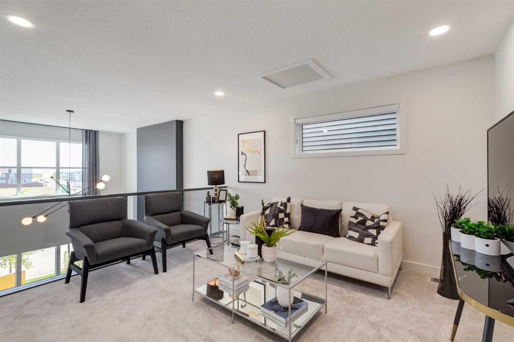 THIS HOME SPENT ITS FIRST YEARS IN THE SPOTLIGHT AS A HOMES BY AVI SHOWHOME. NOW IT’S READY TO TRADE DISPLAY LIFE FOR REAL LIFE WITH ITS FIRST OWNER. The living room itself rises TWO STOREYS HIGH, anchored by a bold painted feature wall with an ELECTRIC FIREPLACE and clean mantle ledge. Windows stack one above another, pulling daylight into every corner. GLASS RAILING from the bonus room above keeps the sightlines open, so even upstairs you feel part of the action. In the kitchen, the details go beyond bu...