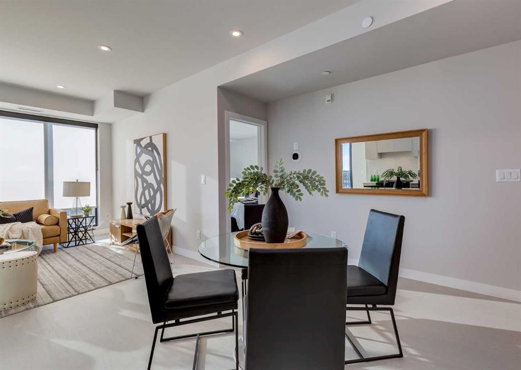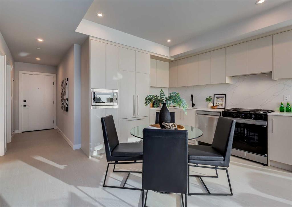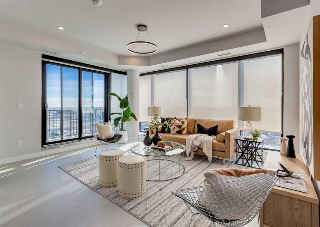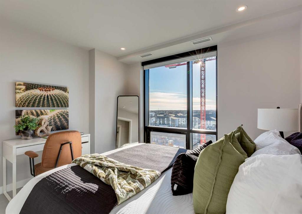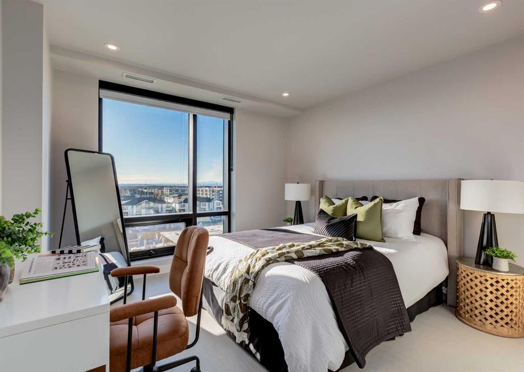 Welcome to this brand-new corner-unit condominium in the Plaza, located in the award-winning West District, where modern design meets an exceptional urban lifestyle. This bright and beautifully designed home features 9-foot ceilings and expansive windows that flood the space with natural light throughout the day. With the main living area and primary bedroom facing south, the home enjoys incredible sunshine, while the east-facing balcony and second bedroom overlook the stunning central patio below. The open...