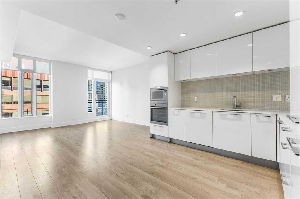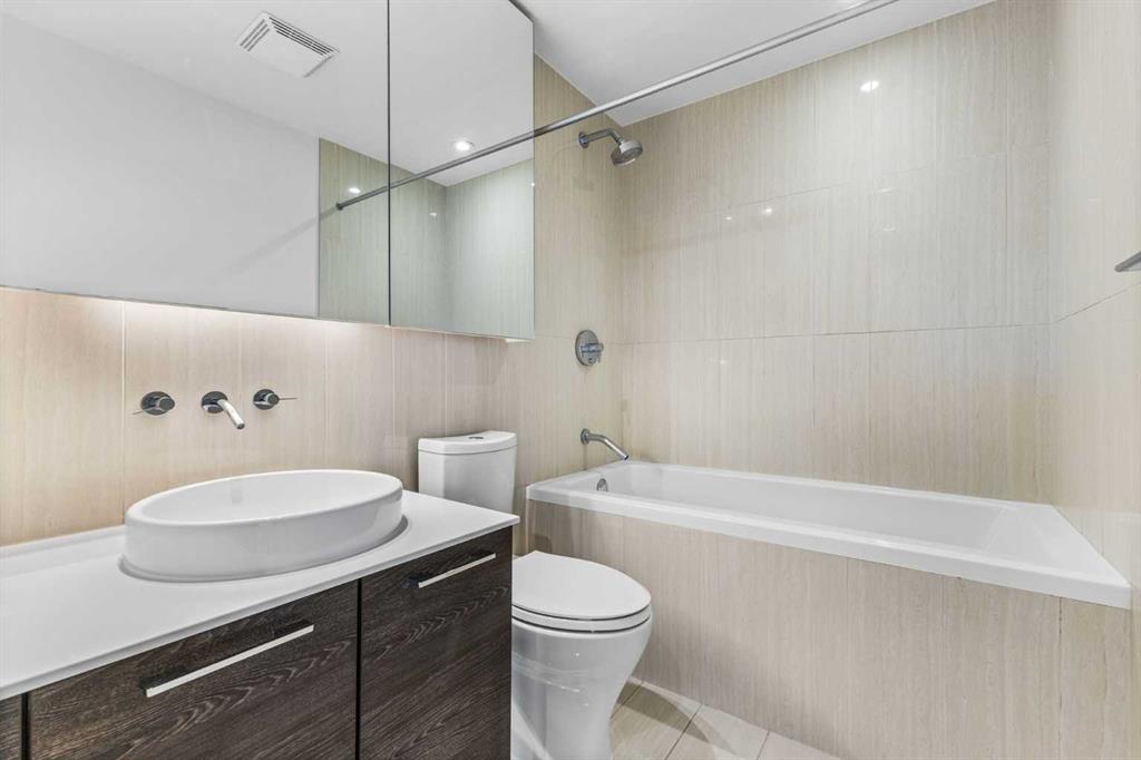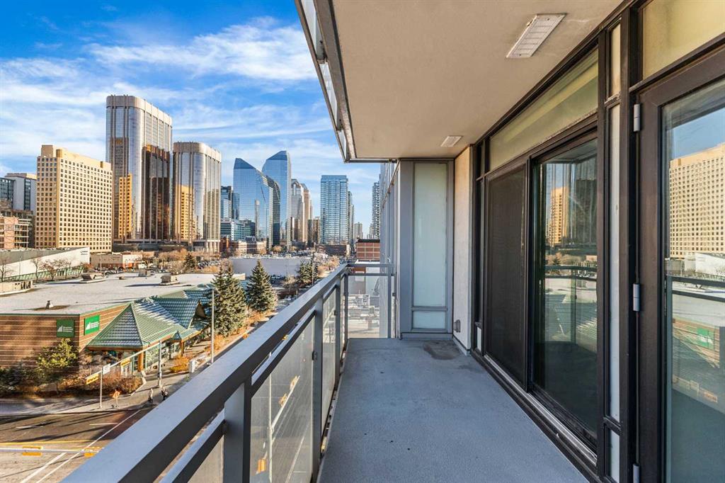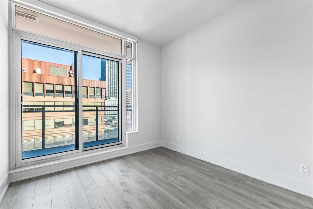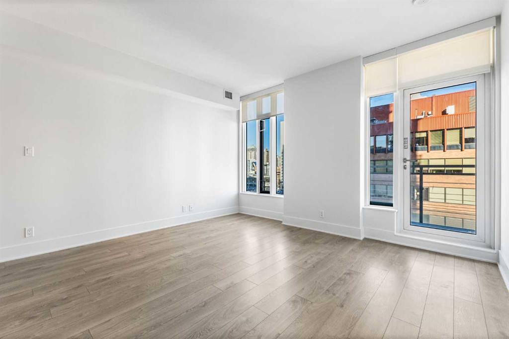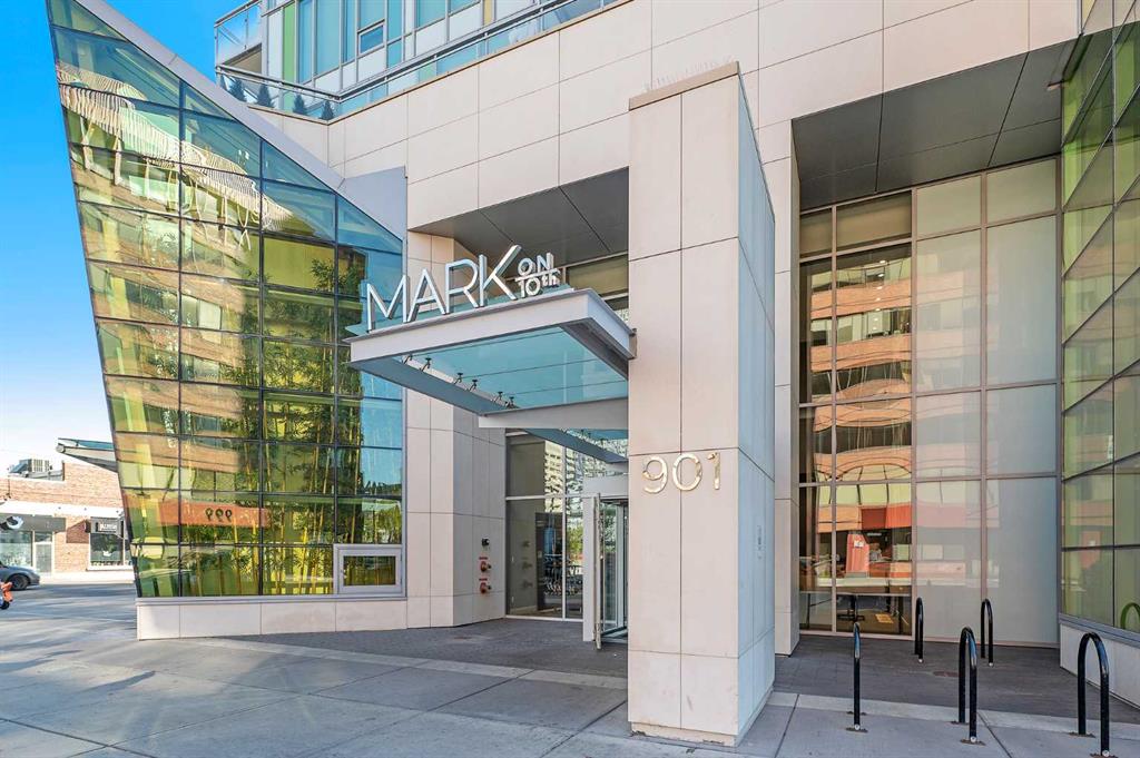 Centrally located in the Mark on 10th building, this 1 bedroom plus den condo boasts beautiful downtown views! The open plan presents laminate flooring & high ceilings, showcasing the kitchen which is tastefully finished with quartz counter tops, glossy white cabinetry, built-in appliances & ample space for a casual dining area. The spacious living room has access to a private balcony with downtown views. A cozy den/office provides the perfect space for a home office set-up. A spacious bedroom with ample cl...