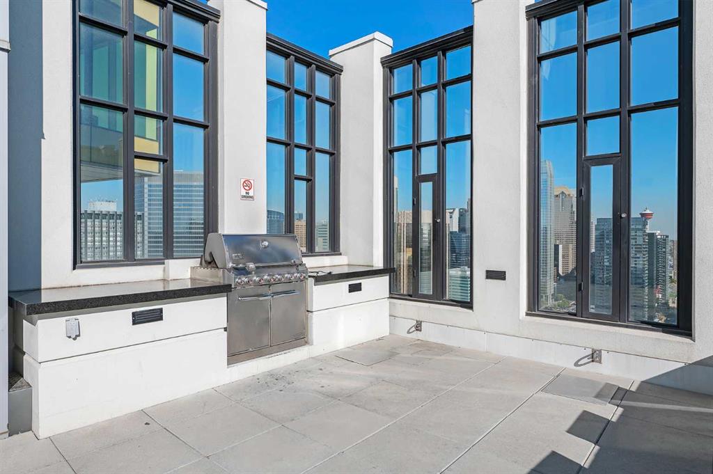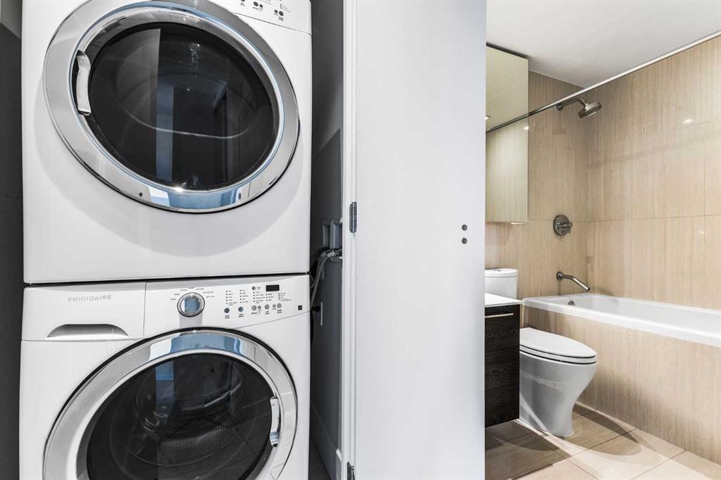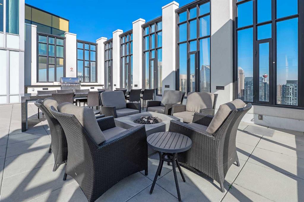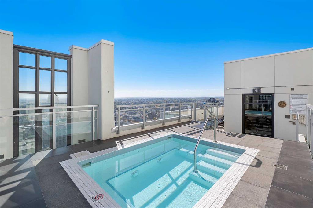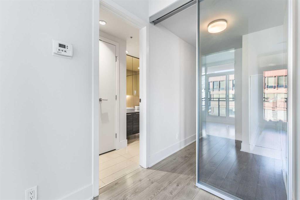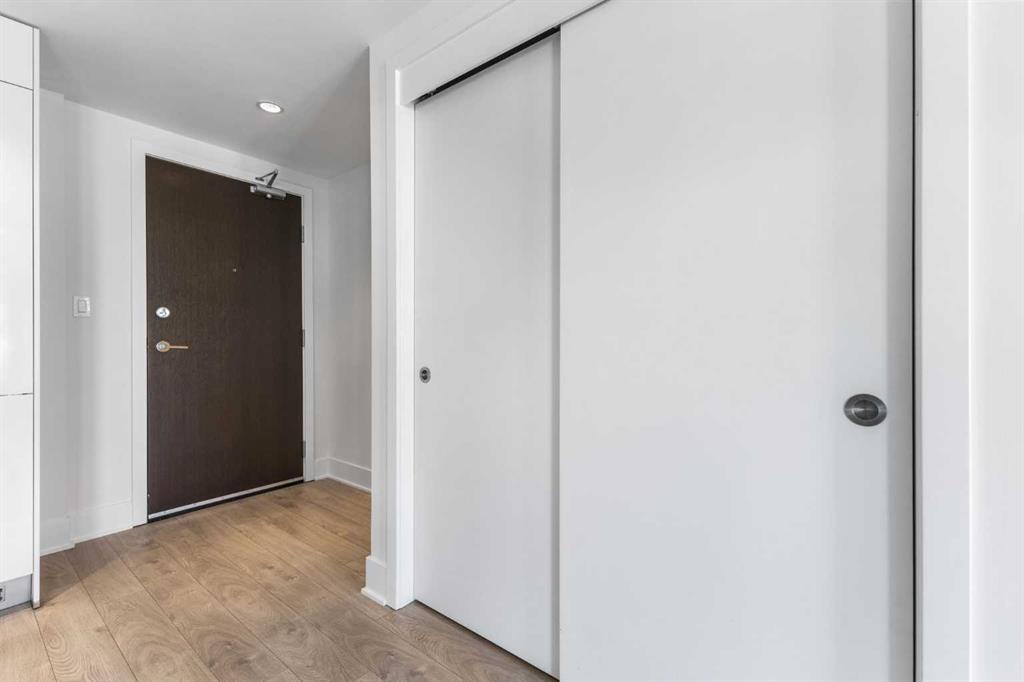 Centrally located in the Mark on 10th building, this 1 bedroom plus den condo boasts beautiful downtown views! The open plan presents laminate flooring & high ceilings, showcasing the kitchen which is tastefully finished with quartz counter tops, glossy white cabinetry, built-in appliances & ample space for a casual dining area. The spacious living room has access to a private balcony with downtown views. A cozy den/office provides the perfect space for a home office set-up. A spacious bedroom with ample cl...