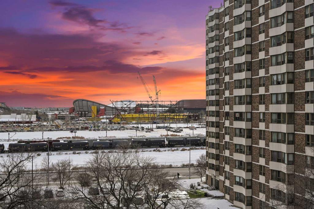 Welcome to this stunning 2-bedroom, ultra-modern corner condo offering breathtaking panoramic views and an unbeatable inner-city lifestyle. Designed with both style and functionality in mind, this bright and spacious home features 9-foot ceilings, floor-to-ceiling windows, and a spectacular balcony perfect for enjoying Calgary’s skyline and unforgettable sunsets. From the moment you enter, you’re greeted by unobstructed views of the Calgary Tower, Central Library, and Stampede Grounds, creating an instant w...