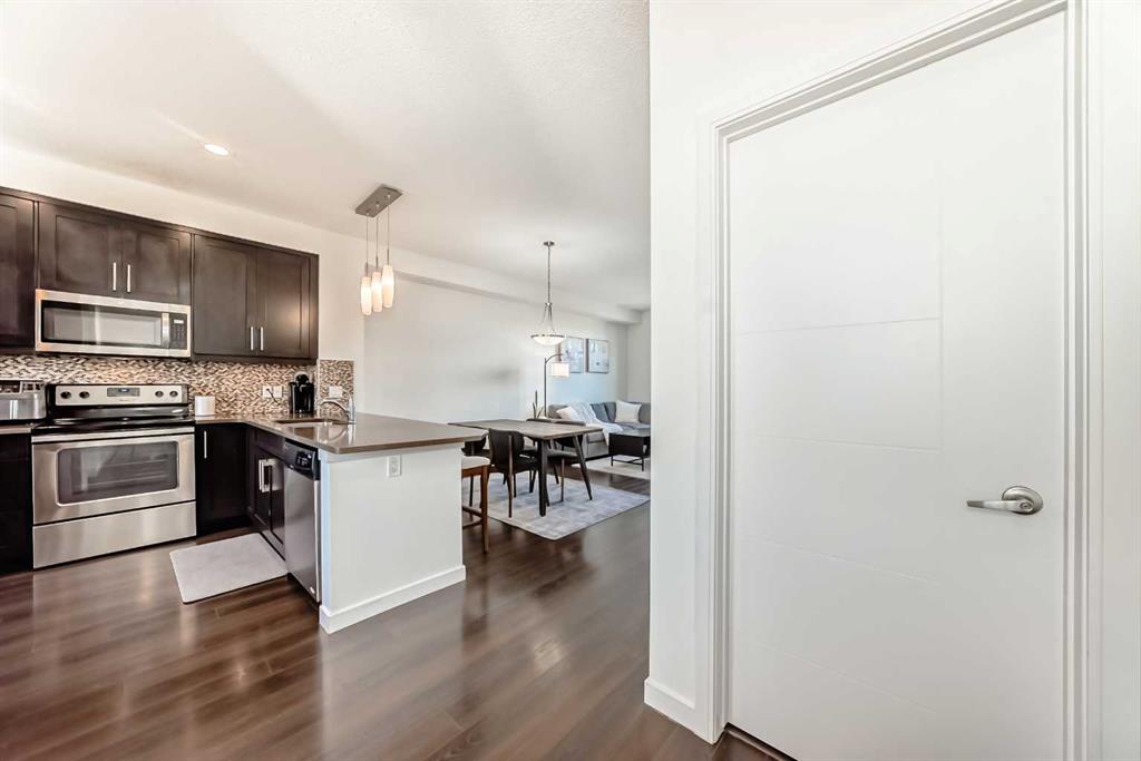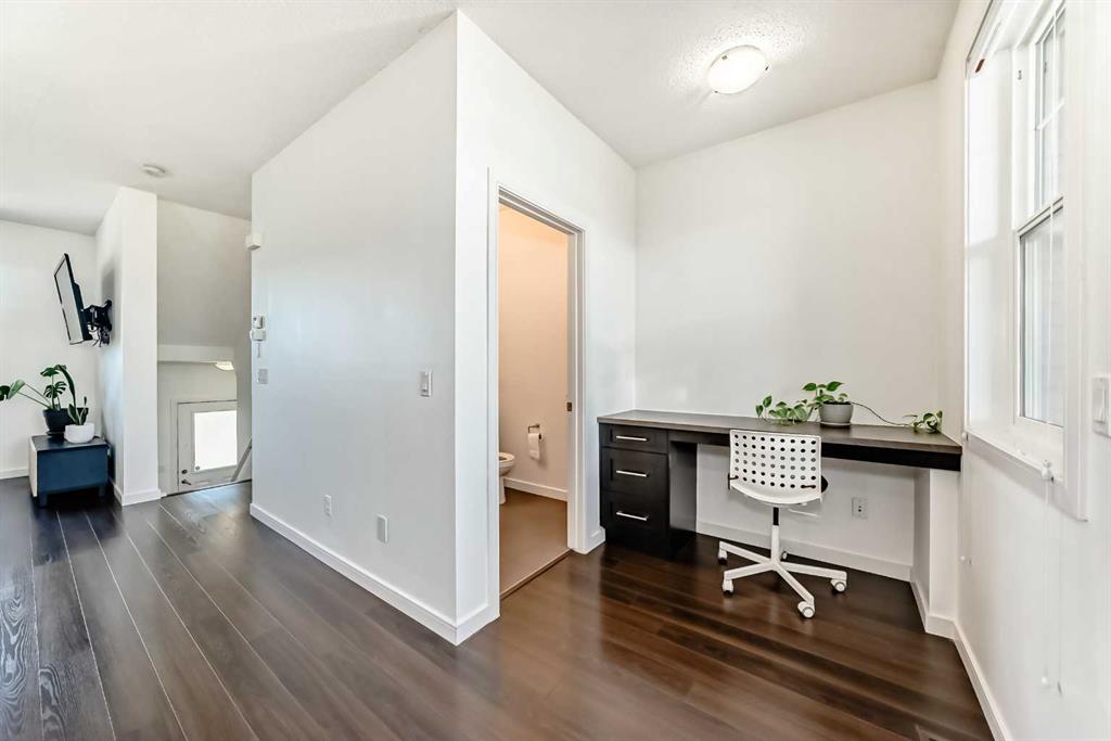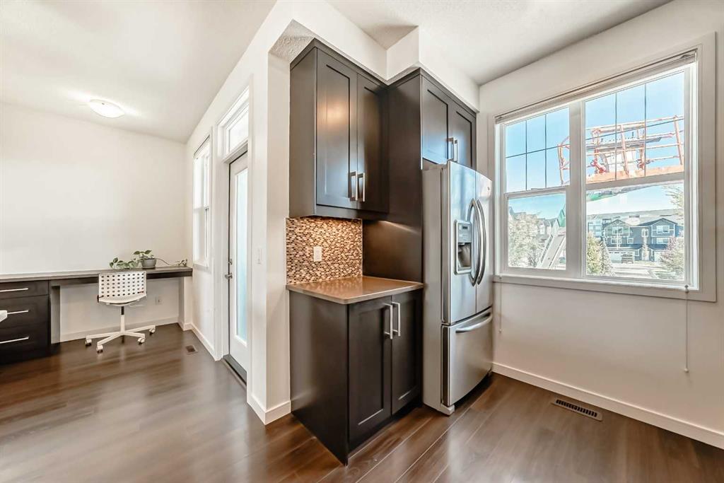This bright Nolan Hill townhome offers thoughtfully designed living across two levels with approximately 1,302 sq ft RMS of finished living space. The main level features a functional kitchen that flows into the dining and living areas, plus a dedicated main-floor office and balcony — perfect for working from home or enjoying a coffee break. The upper level hosts a spacious primary bedroom with walk-in closet and ensuite, an additional ample sized secondary bedroom equipped with its own walk-in-closet ensui...
