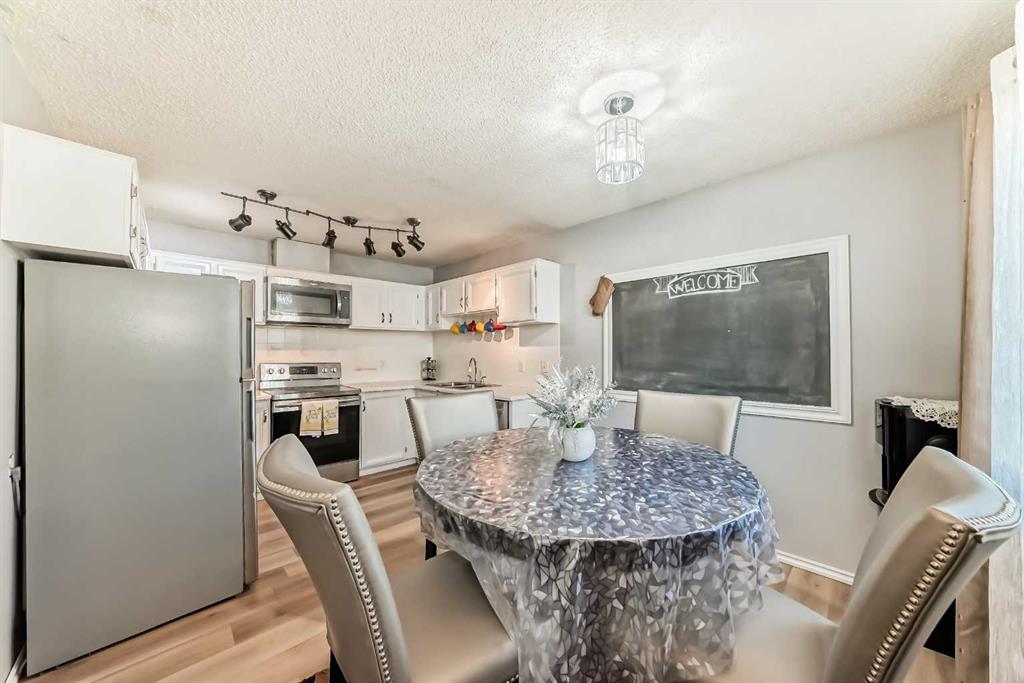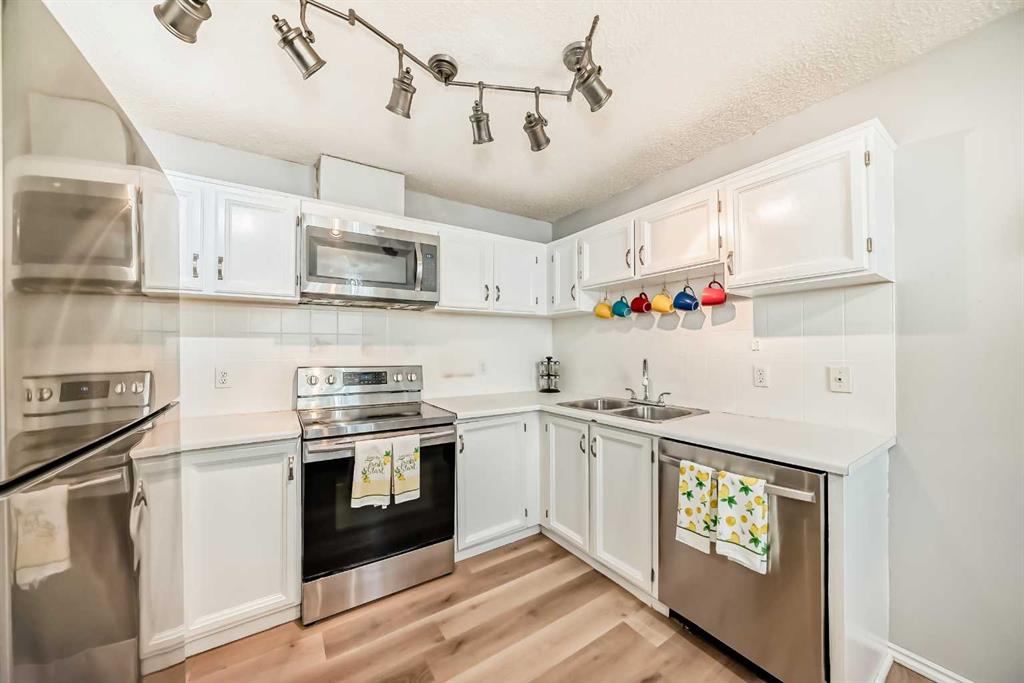 Beautifully maintained townhouse offers an open-concept main level perfect for modern living. Relax in the cozy living room featuring a corner gas fireplace, with patio doors leading to your private fenced backyard. The kitchen is a chef’s dream with sleek white cabinetry, stainless-steel appliances, and an adjacent dining nook for family meals. Upstairs, find three spacious bedrooms with laminate flooring, including a large master retreat complete with a walk-in closet and completed with a 4pcs main bath. ...