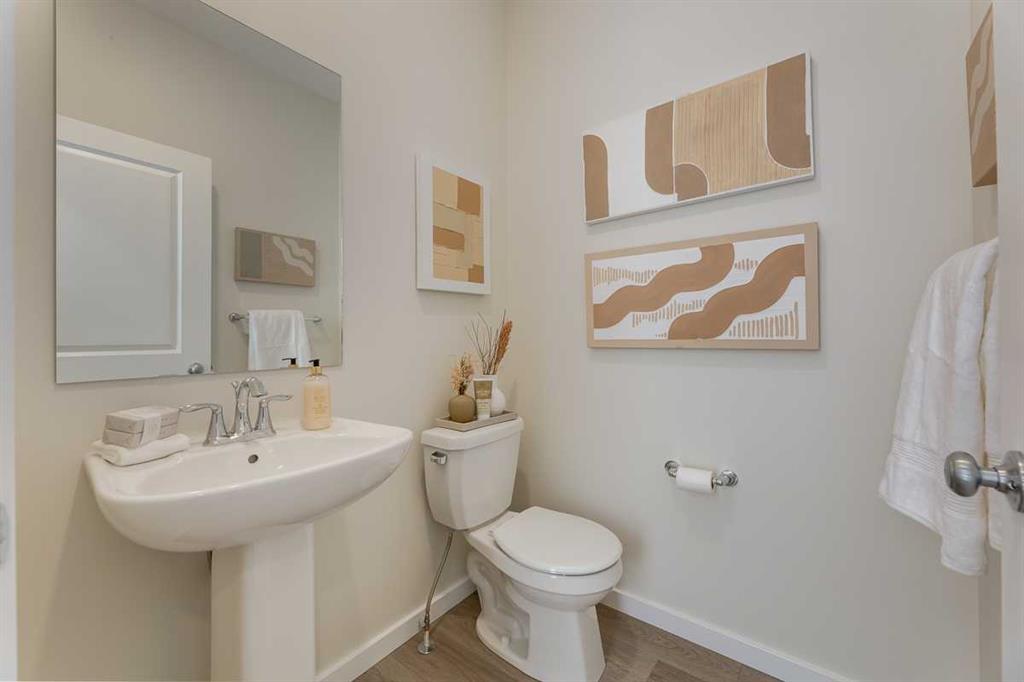 NO NEIGHBOURS BEHIND—JUST SUNRISE ON THE POND AND A REAR DECK THAT ACTUALLY GETS USED. This new, never-lived-in half duplex backs directly onto the greenspace and community storm pond in Starling (NW), offering open sky, long pathway views, and more breathing room than most new builds. Instead of a back fence, you get a quiet outlook that shifts with the light. Inside, the main floor is easy and efficient with 9’ ceilings, luxury vinyl plank flooring, and clean sightlines from the kitchen, through the dini...