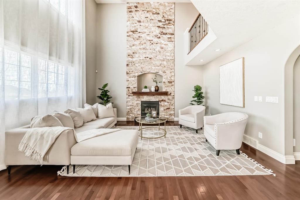 Welcome to this beautiful, bright, 2-storey walkout home with over 3000 square feet of finishing living space in the highly sought-after community of Sherwood. The bright main floor is filled with natural light and features a amazing living room with soaring two-storey windows and a breathtaking floor-to-ceiling stone fireplace. The thoughtfully designed layout also includes a formal dining room with elegant archways and columns, a home office with bay window, and a cozy dining nook with French doors leadin...