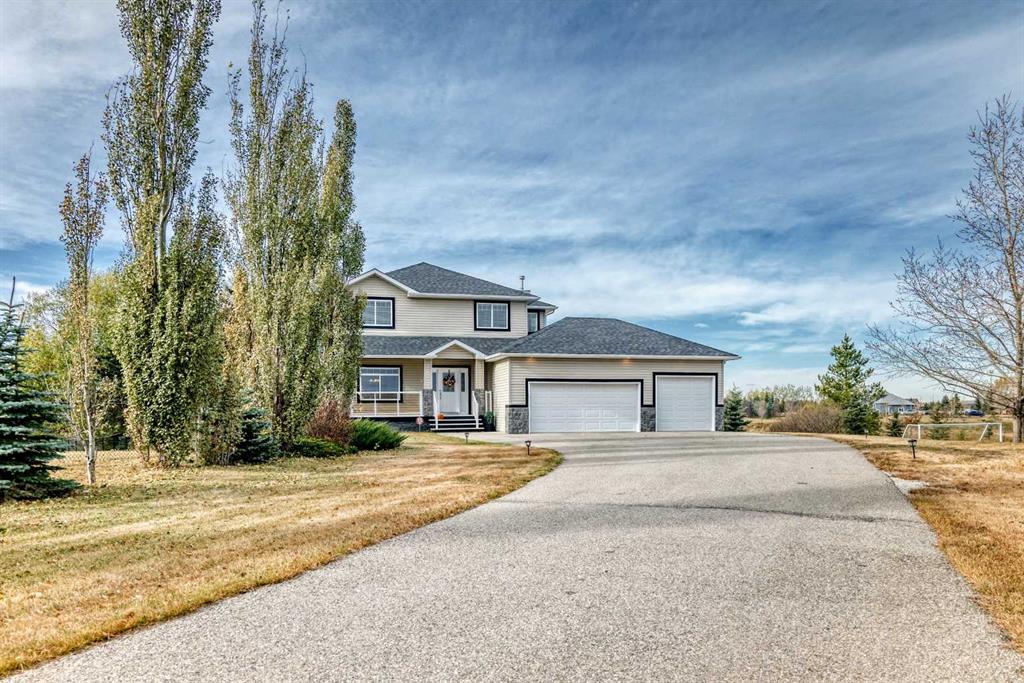 Welcome to this immaculate estate home in the highly sought-after community of Sharp Hill, where pride of ownership and quality craftsmanship shine throughout. Perfectly positioned on 2 private acres surrounded by mature trees and natural beauty, this property offers the ideal blend of peace, privacy, and convenience — just minutes from both Airdrie and Calgary. From the moment you arrive, the long, private driveway and exceptional curb appeal set the tone for this stunning residence. Spotless in every way ...