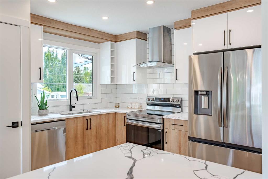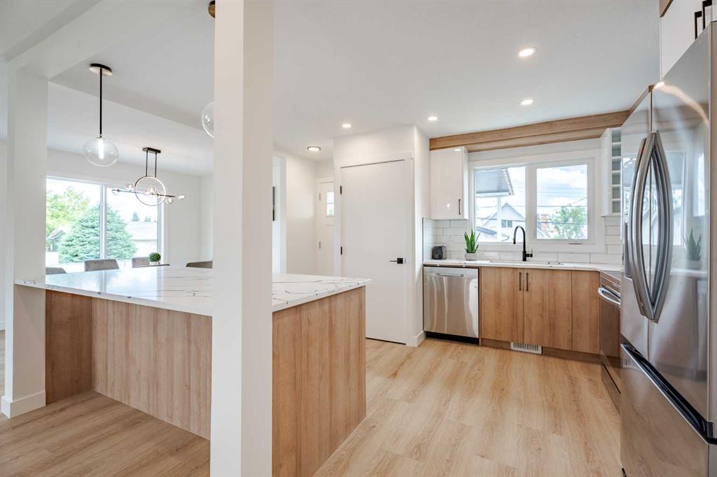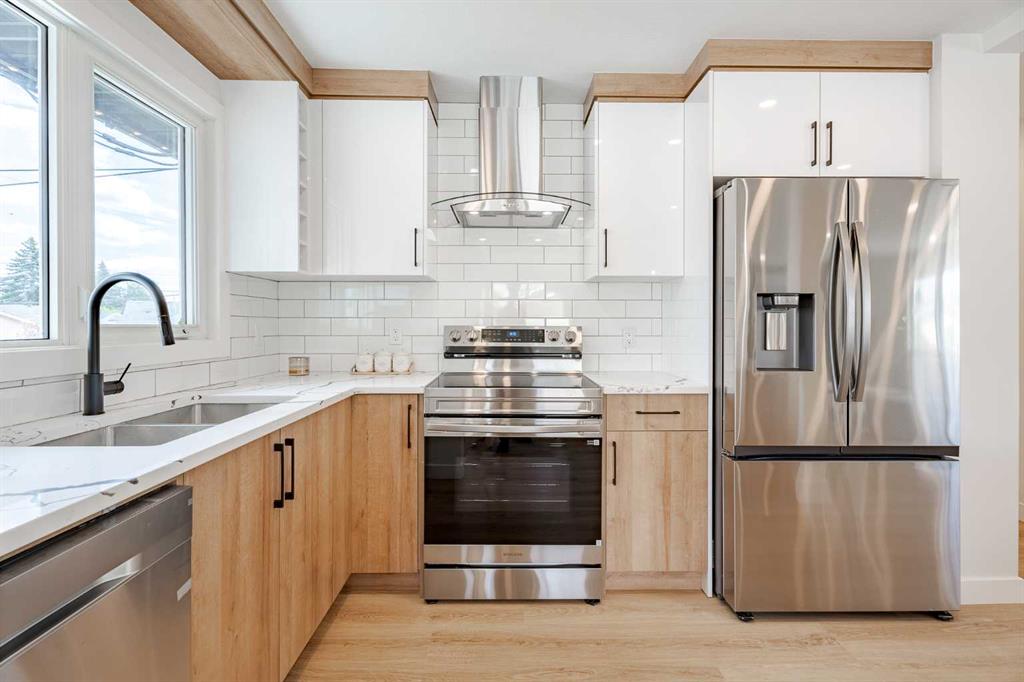 Fully renovated bi-level on a corner lot in the desirable community of Huntington Hills! Situated on a quiet street with back alley access and a front paved driveway, this home offers plenty of parking and excellent curb appeal. The main level features upgraded flooring, a modern tile-accented fireplace, a bright kitchen with island, 3 bedrooms, and 1.5 baths. A separate side entrance leads to an illegal basement suite with 3 bedrooms, full bath, kitchen, and laundry—ideal for rental income or extended fami...