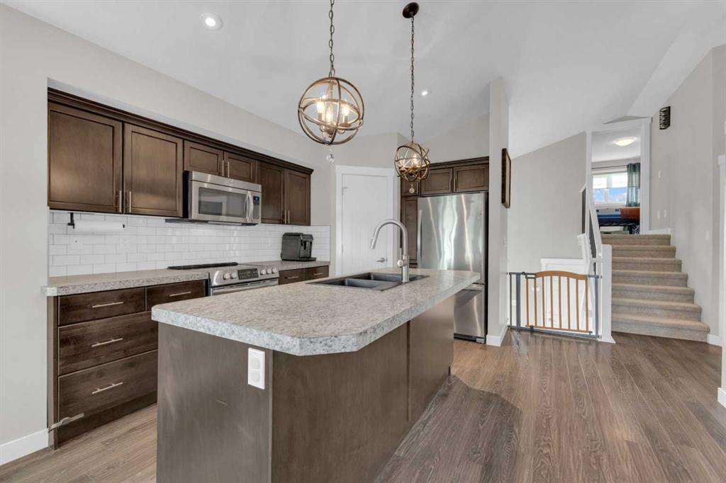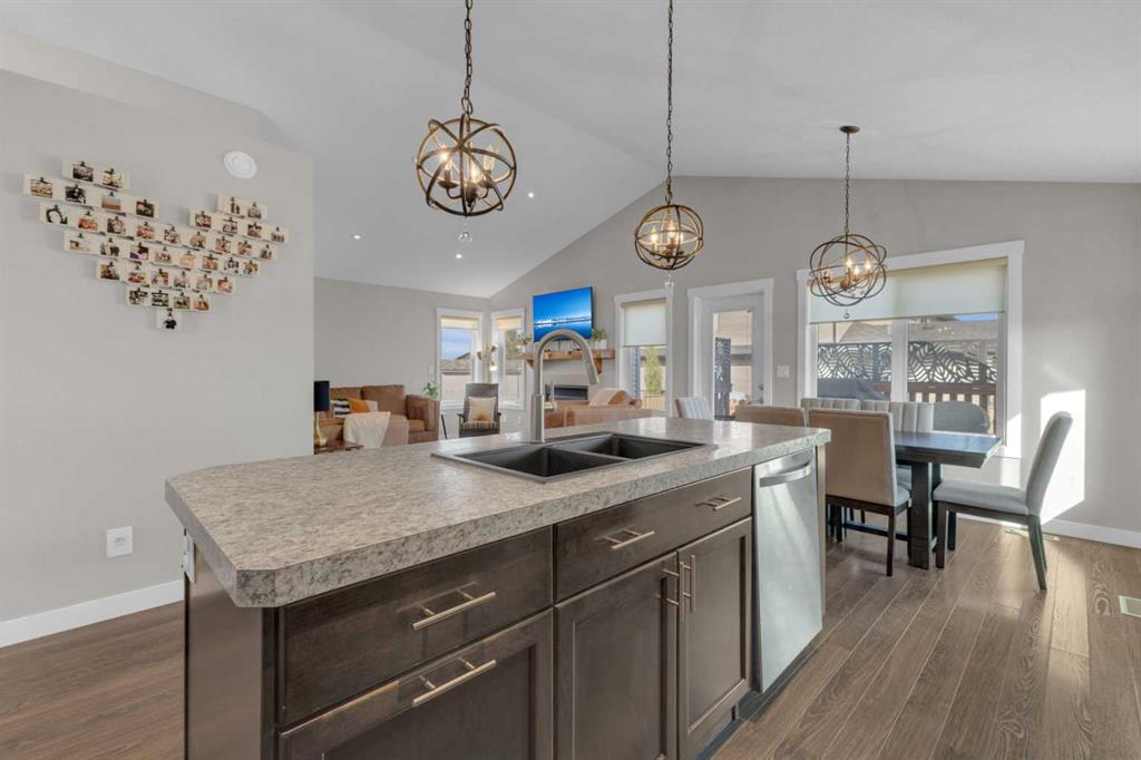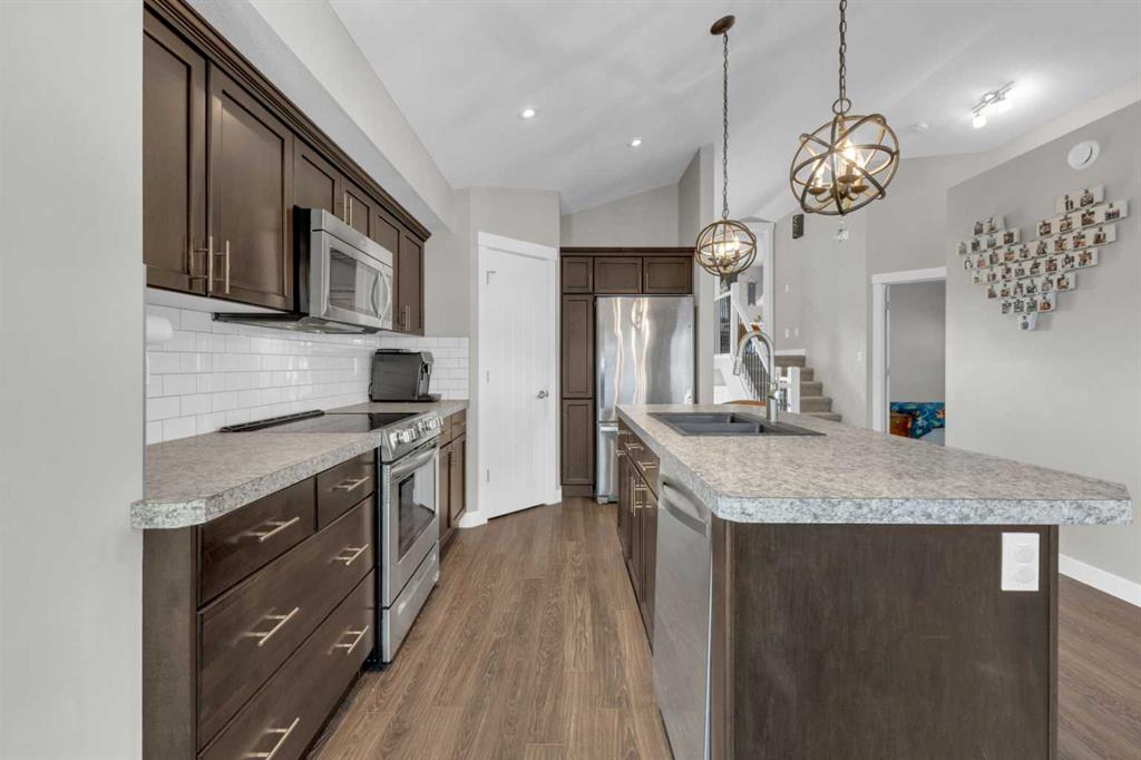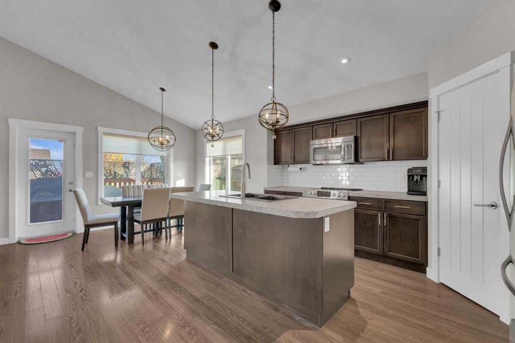 Cozy and comfortable, this beautiful modified bi-level in Ryders Ridge offers the perfect blend of style and functionality. Ideally located just moments from trails, parks, schools, and amenities, it’s a home designed for both convenience and everyday living. The open concept main floor showcases a spacious living room with a gas fireplace and plenty of room for a large sectional. Adjacent to the living room is a dining area with garden doors that lead to a private deck featuring full privacy screens, overl...
